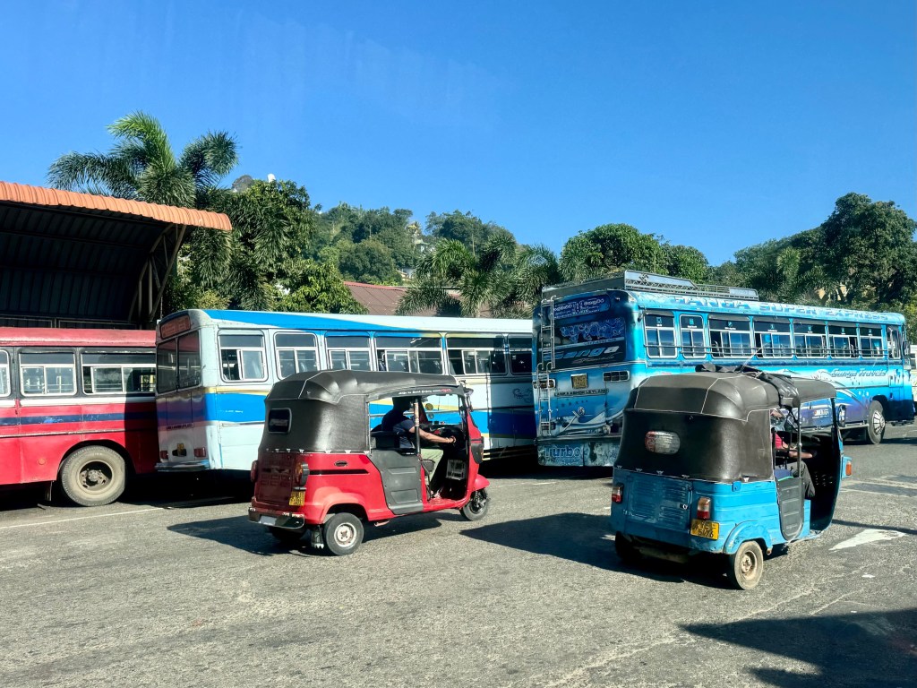 Today Winsor, Thalatha and I came to the beach at Una Watuna. We took the bus from Kandy to the outskirts of Colombo and then took another bus to Galle. The first bus was an elongated van which waited till its appointed hour, 9 a.m. to leave from the Kandy bus station. As we were waiting for the bus to fill up I was able to watch the buses coming in and out of the Kandy main bus station. There were hundreds of buses cycling in and out, appearing to stream in a steady line with no space between them. Kandy is in the middle of Sri Lanka and so is a travel hub, but this steady stream of hundreds of buses of various sizes also is testimony to the strength of public transportation system in Sri Lanka. You can go anywhere by bus with one bus to Colombo leaving every 15 minutes. You don’t have to know the bus schedule and certainly don’t need to make a reservation. Just show up at the bus station and within 15 minutes a bus will be leaving for anywhere on the island, or so it seems.