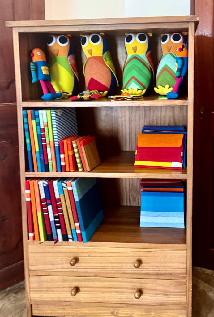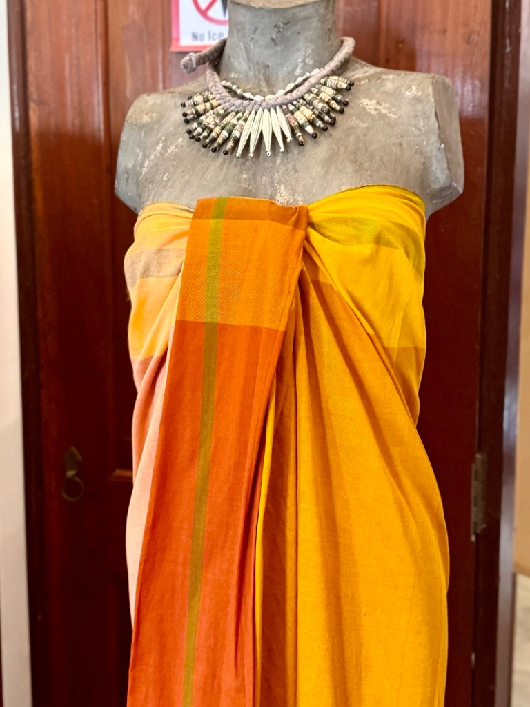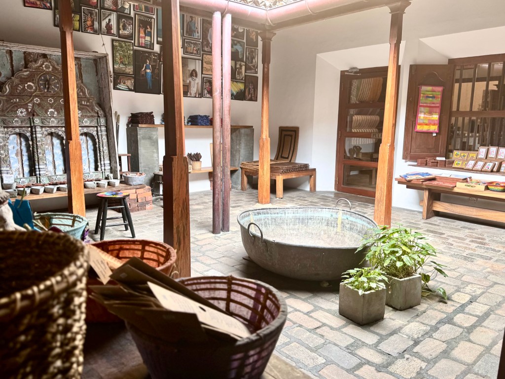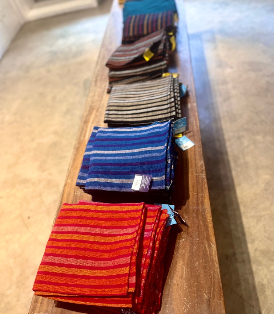 Barbara Sansoni grew up in Kandy, went to a convent school in India during the Second World War, went to Art School in England and then became a pioneer in both architecture and the craft movement in Sri Lanka. She developed a form of textiles in brilliant colors with imported dyes that transformed for a new urban elite, traditional Sri Lankan textiles into a new international form. She died in 2022 at the age of 94. The Barefoot Shop was one of her showplaces. I won’t try to describe her textiles, I will just show you photographs of the store. The store also has an online business if you are interested.