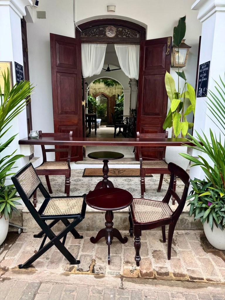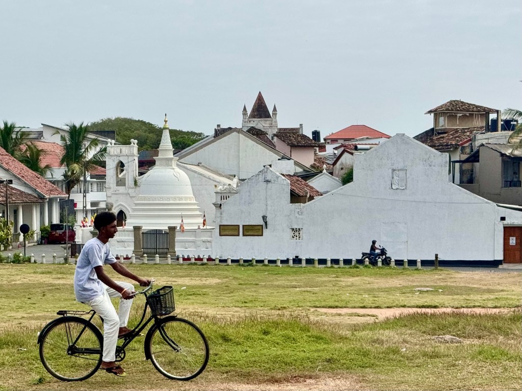 And in Haarlem I saw some of the huge houses and estates built by the merchants who became fabulously wealthy through the spice trade. The huge mansion and lovely grounds where my niece Henny walks each day, now open to the public, was built by a fabulously wealthy coffee merchant. And in the Galle Fort area there were beautiful old houses of merchants made rich by the spice trade that make this into a world heritage area. Now these beautiful white houses with dark accents are boutique shops and luxury guest houses and hotels. Now there is still the smell of western colonization with the guests almost all being white and from Northern Europe with Sri Lankans dependent on their (my) dollars and euros. Even as I delighted in this beautiful area, taking photograph after photograph, I was aware that Thalatha and Winsor weren’t that comfortable among these expensive boutique stores aimed at Europeans and wanted to get back to the modern crowded city with ordinary people living their ordinary lives where Thalatha spent a long time picking out a new dress filled with the loose wide dresses that most Sri Lankan women wear.