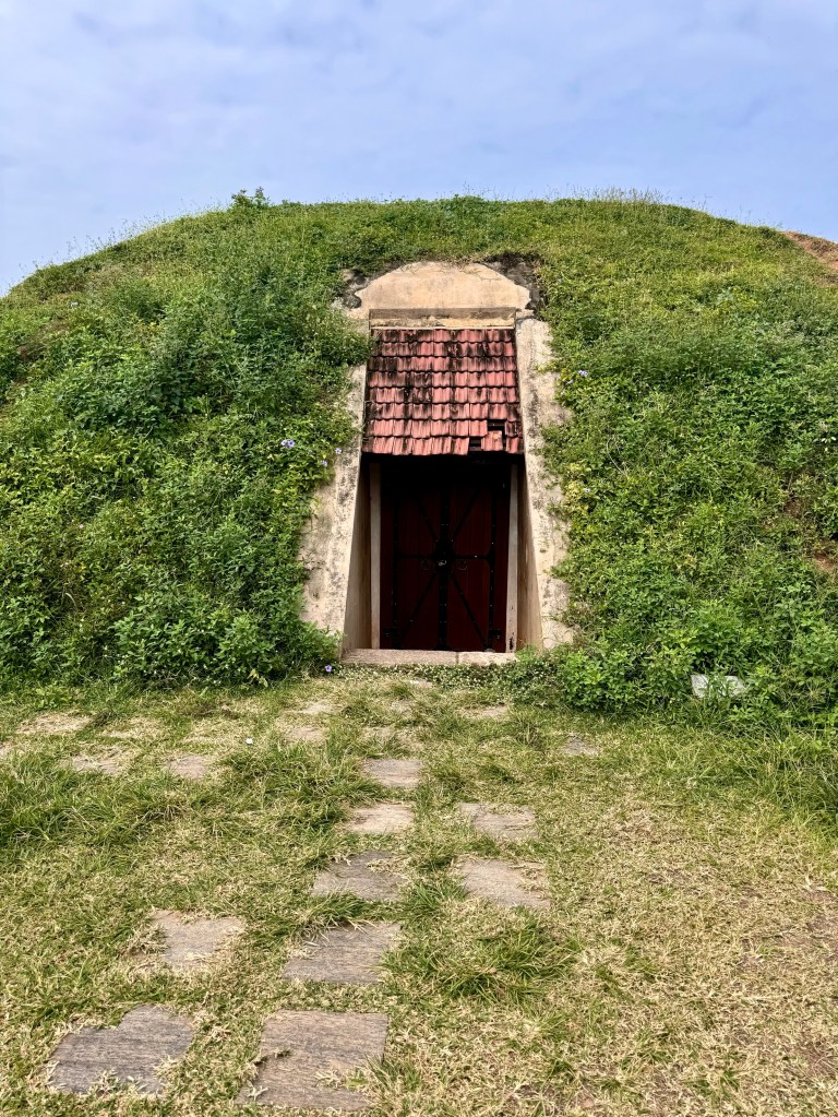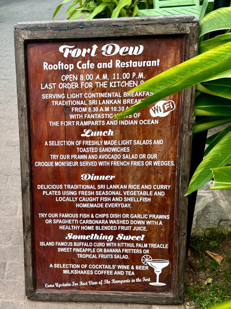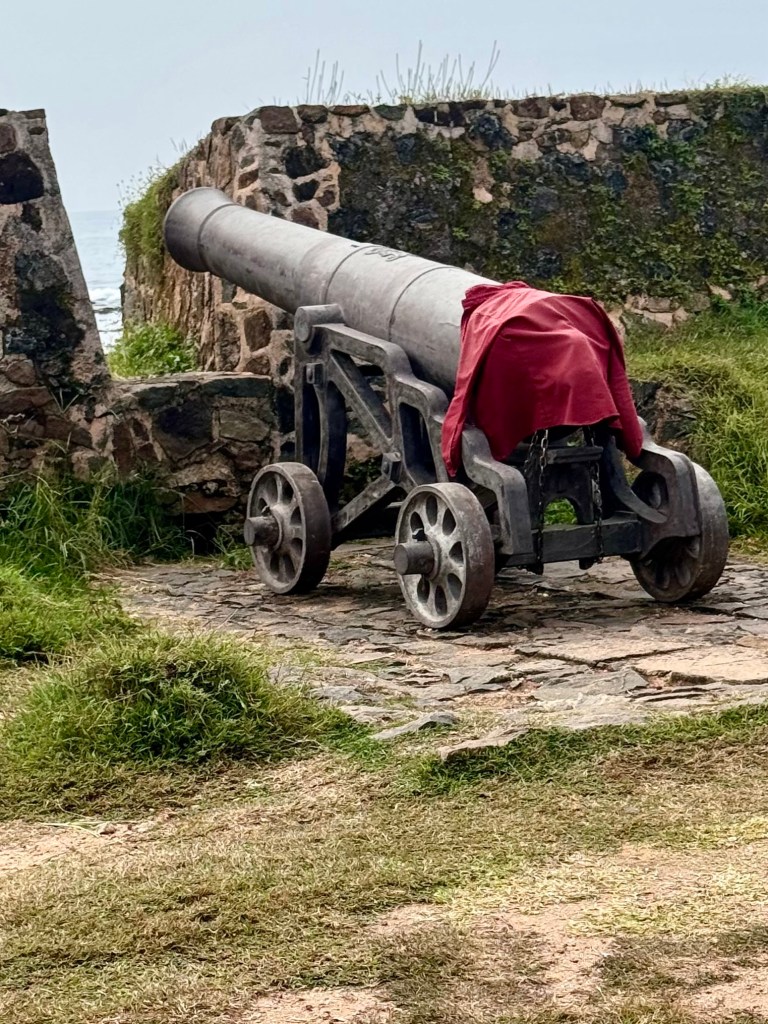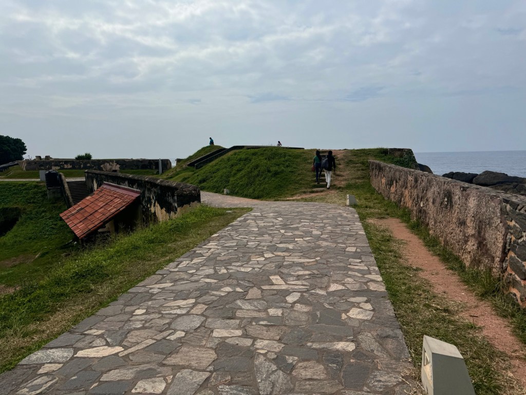 I don’t know Dutch or Sri Lankan history well, but these are my impressions of what I saw as understood in my own way. As soon as we walked through the tunnel into the fort area with its huge walls and immense earthen works on the harbor side I was suddenly reminded of a book, The Nutmeg’s Curse, that a friend, Phil Diehn, in my old man’s group had recommended to us. That book describes the way that the Dutch with their powerful navy, in their drive to control the spice trade in the 1600’s, built a series of harbor forts from which to launch their navy in it’s control of the Indonesian spice trade during which they determined that the only way to control the nutmeg and mace trees which at the time grew only on the Banda islands of Indonesia was to force the inhabitants of the island of Lothar off the island and, if they didn’t leave, to burn their villages and kill them. It was a god given right to genocide.