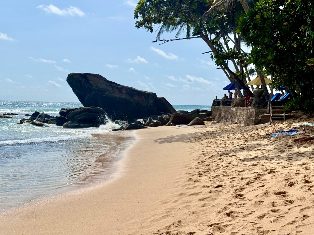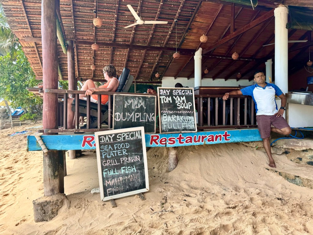 Today I made a trip down memory lane with a visit to Rathna‘s Guest House a couple of kilometers down from Nooit Gedacht. In about 1992 my son joined me and Susie when we took a student group to Sri Lanka, India and Nepal and on the way home he and I traveled home together and spent a couple of nights in Una Watuna. We were on a crowded bus from Colombo together headed to the Una Watuna Beach Resort in Una Watuna. When the bus got to Galle and we were getting he got off ahead of me and for some reason I was blocked from getting off the crowded bus. When I did push my way off we had gone maybe 100 yards. I went back to connect with Tom and couldn‘t find him. I searched all around and finally gave up and took a rickshaw to the Una Watuna Beach Resort where we both knew we were going. It was late afternoon and he didn‘t show up. He was twenty and capable but hadn‘t been to Sri Lanka before and I was worried about him. So I decided to walk the long walk back to Galle so that if was finding his way by rickshaw or walking he would see me. But I got back to Galle and didn‘t see him. I didn‘t know what to do so went back to the Una Watuna Beach Resort to wait for him. By bedtime he hadn‘t shown up. I slept and then in the morning had breakfast, worried sick that he had gotten into some kind of trouble, perhaps an accident. And then he walked up.