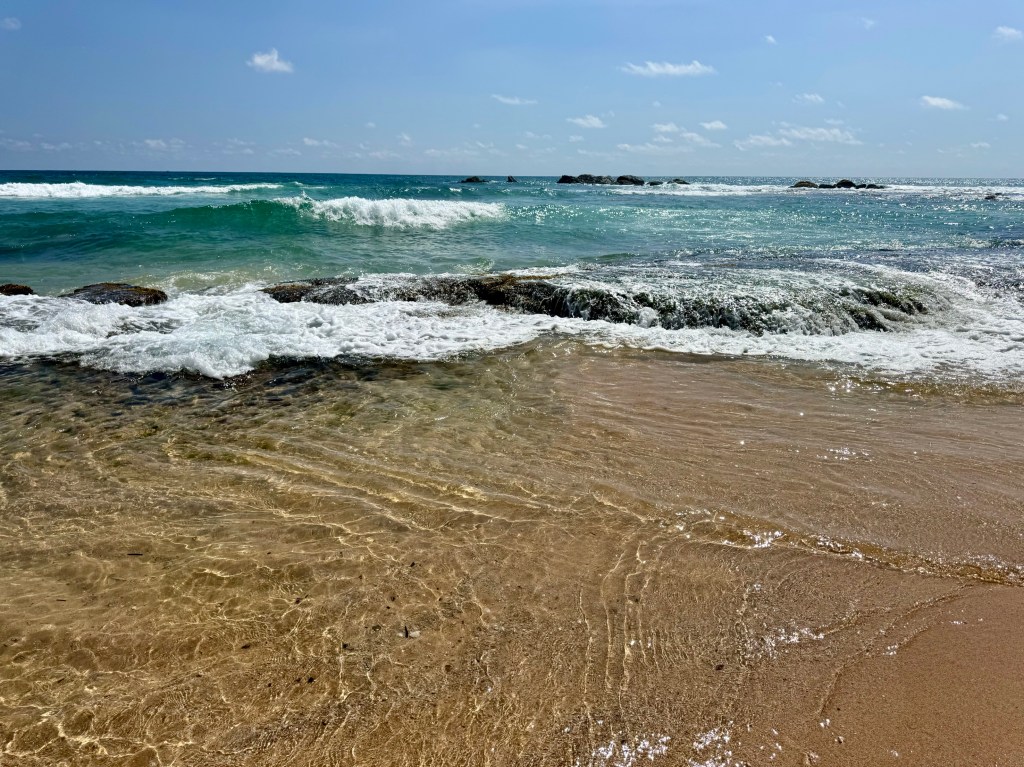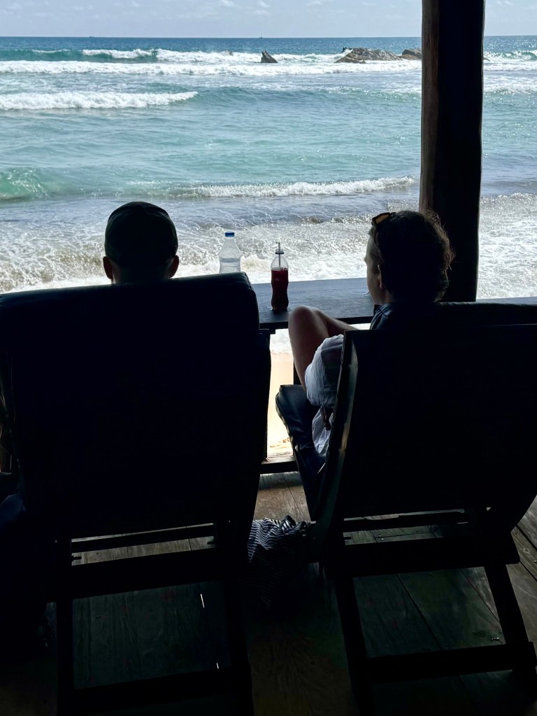 He seemed so delighted with Rathna‘s Guest House that he persuaded me to collect my things and to come with him. For a couple of nights we stayed in the cabana with the waves crashing around us.