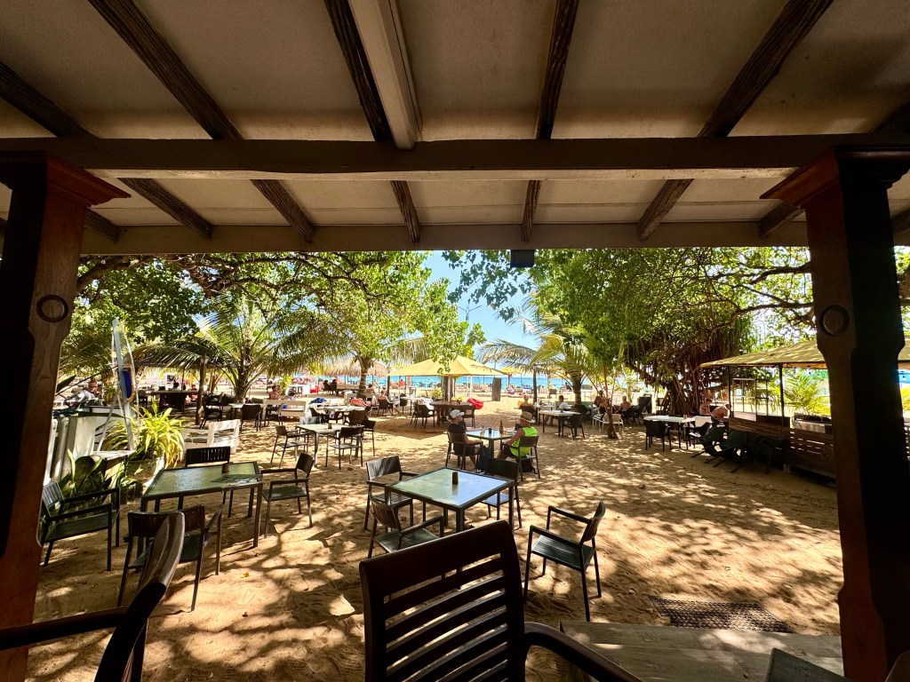I am sitting in the Happy Banana restaurant where our groups often ate in our 10 trips to Sri Lanka during our days of relaxation at Una Watuna. It is now a greatly expanded Happy Banana with a huge dining area under a roof and tables stretching far down the beach. It also has a hotel attached and is the Happy Banana Beach Resort. During the tsunami in 2004 the wall of water rose up to the roof and one of the workers here died. 3000 people died in Una Watuna.