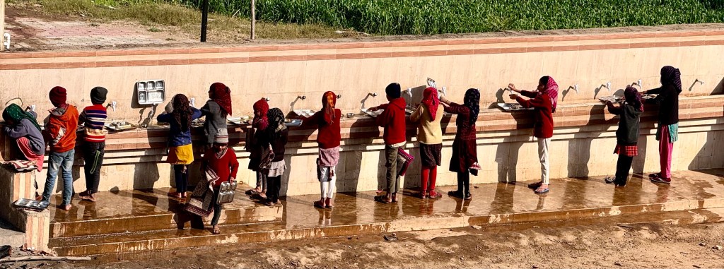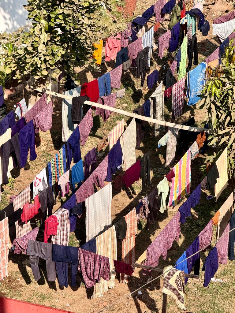 When they are done eating they wash their own breakfast trays. And several times a week they wash their own clothes and hang them up to dry.