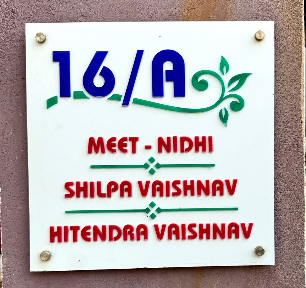 I videoed the last of the highway in Mehsana and the right turn and ride to Shilpa’s house. Unfortunately I forgot to turn it off at the end and haven’t yet learned how to remove the beginning and end of a video. I have a few photos of her house, often photos of family members. I will take more later.