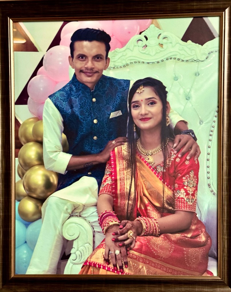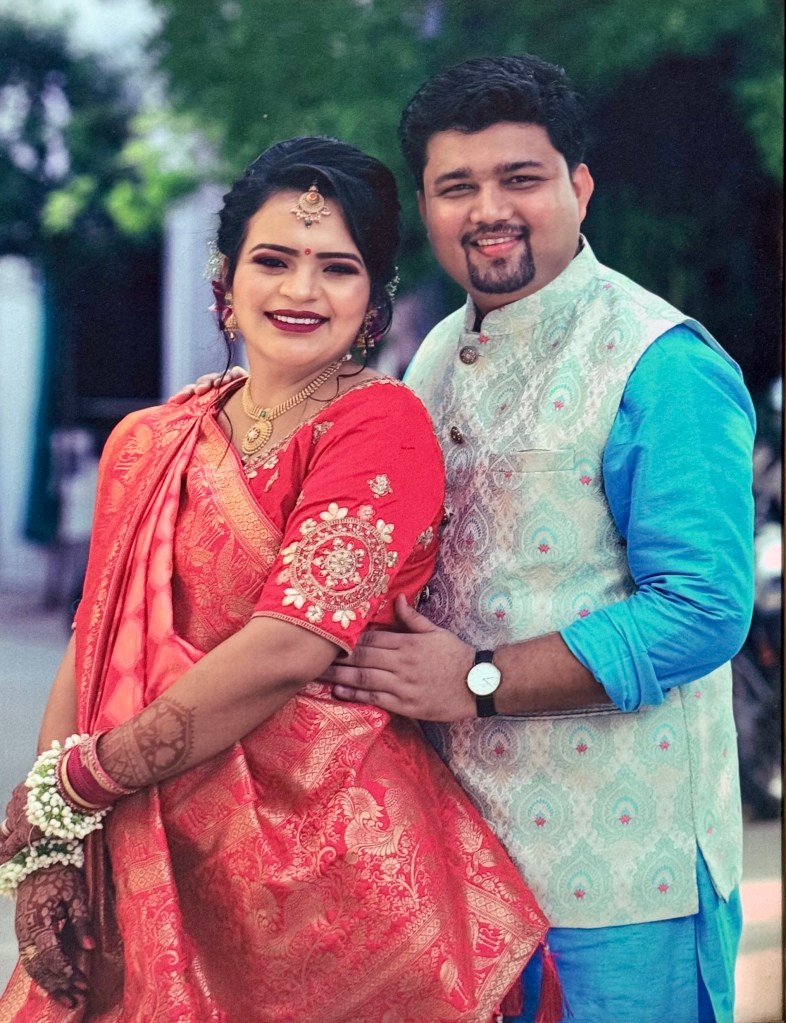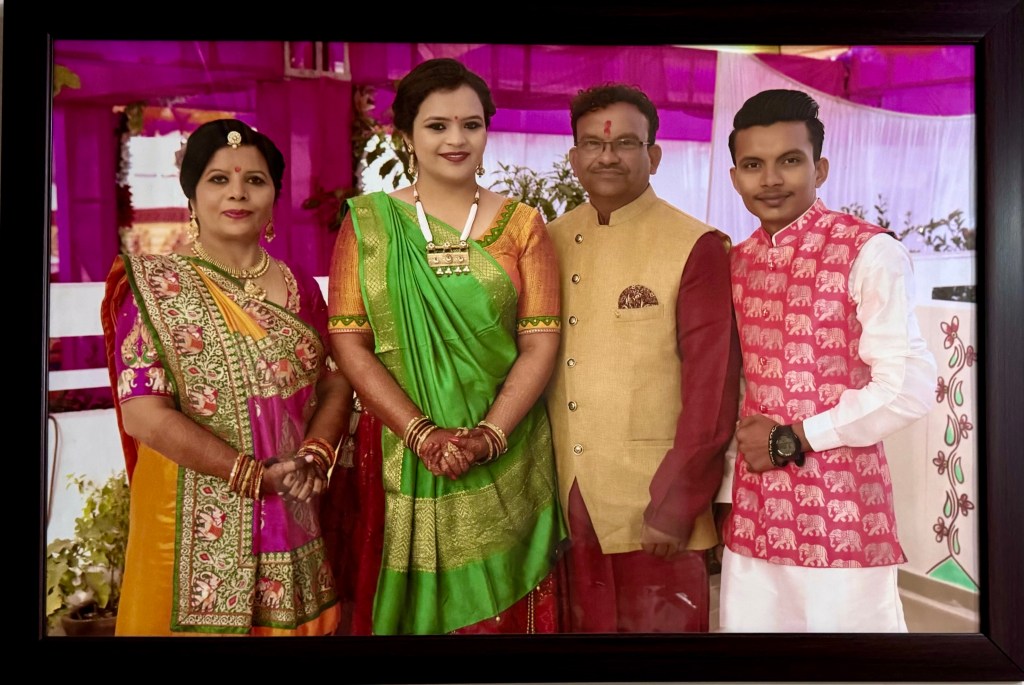 Hitendrabhai, father, with family, at Nidhi’s wedding.