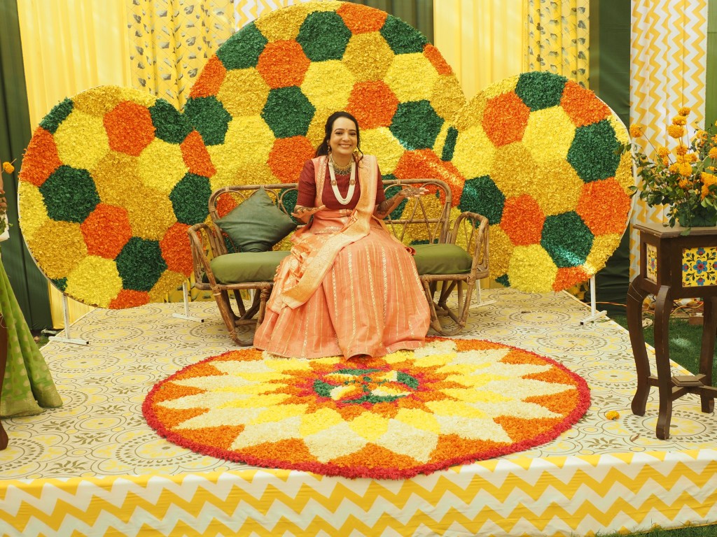 In the temple itself, Mansi, the bride and Dharav, the groom, along with other family members did a variety of puja ceremonies. In the field outside, invitees, from the four corners of the world, sat in comfortable chairs and socialized with each other.