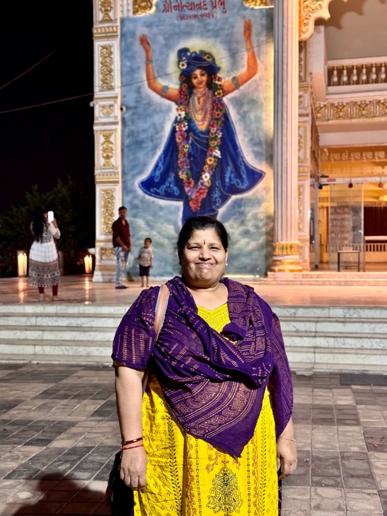 But a very good part of this visit, and partly because I am alone, is that I’ve been completely absorbed into Indian family life. For example, for the days that I’ve been with the Vaishnav family here in Ahmedabad we have all slept in one big room with six beds side by side and shared a bathroom. We also ate all our non wedding meals together in the canteen of the building where we are staying, good Indian food with chilies. And they made sure that I had a daily bucket bath, noting when I did, because an Indian day starts with a bath and they became anxious when I started the day wrong, feeling I must be uncomfortable. They watched over me carefully making sure that I didn’t slip and fall, just as if I were an Indian grandfather. Yesterday evening we all went together to first one remote temple and then a huge ISCON temple worship and to ensure that Niddhi and Herin have a good trip back.