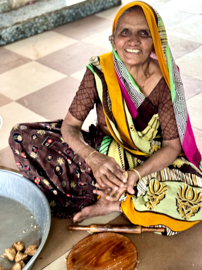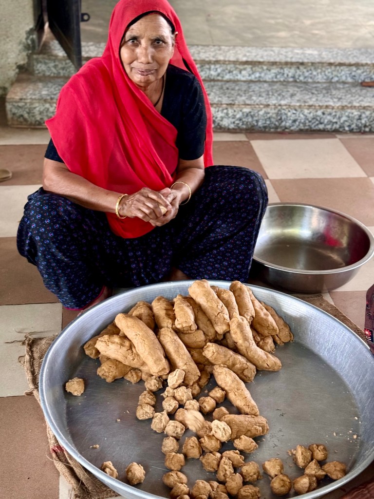 Apparently having a goshala is an important part of each Gandhian institution. The reverence for the cow is not just demonstrated by cows wandering freely in city streets, which seems odd to Westerners who see cows as domesticated animals, providers of meat and milk, but by actual reverence for the presence of cows, a devotion to cows who also provide milk and dahi (yogurt) and particularly clarified butter (ghee) but never meat.