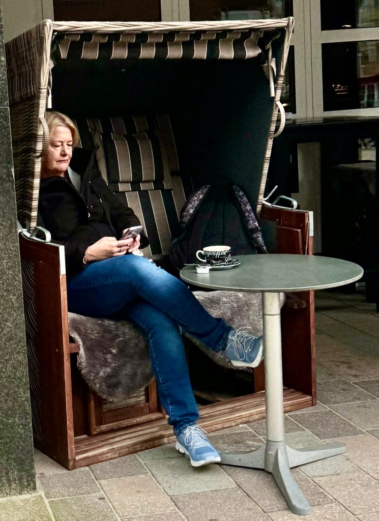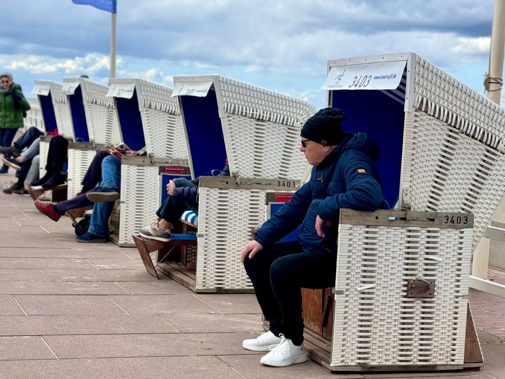 There were long lines of rentable chairs with cushions and woven coverings for sitting on the beach. Even on a sunny day the wind would be chilly. There were a number of hardy souls, determined to enjoy their day on the beach, sitting in these covered seats facing away from the sea where the wind was blowing from, all bundled up and reading a book as if it were a bright summer day. What I learned is that the Germans are a tough bunch. This was no Myrtle beach getaway with people baking half naked in the sun. These were very determined and hardy beach goers.