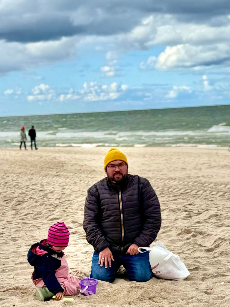 But this taught me how determined the Germans are to have a good time at the beach even in 45 F weather with the wind blowing. There was a stream of walkers along the edge of water beside the angry waves and another stream of walkers on the boardwalk just below the dunes. We were all bundled up. I was wearing the wool pull over my ears hat and the woolen gloves that Elke had sent along with me. She knew what a day at the beach in April was going to be like. No one swam of course, but one hardy father was digging in the sand with his little daughter.
