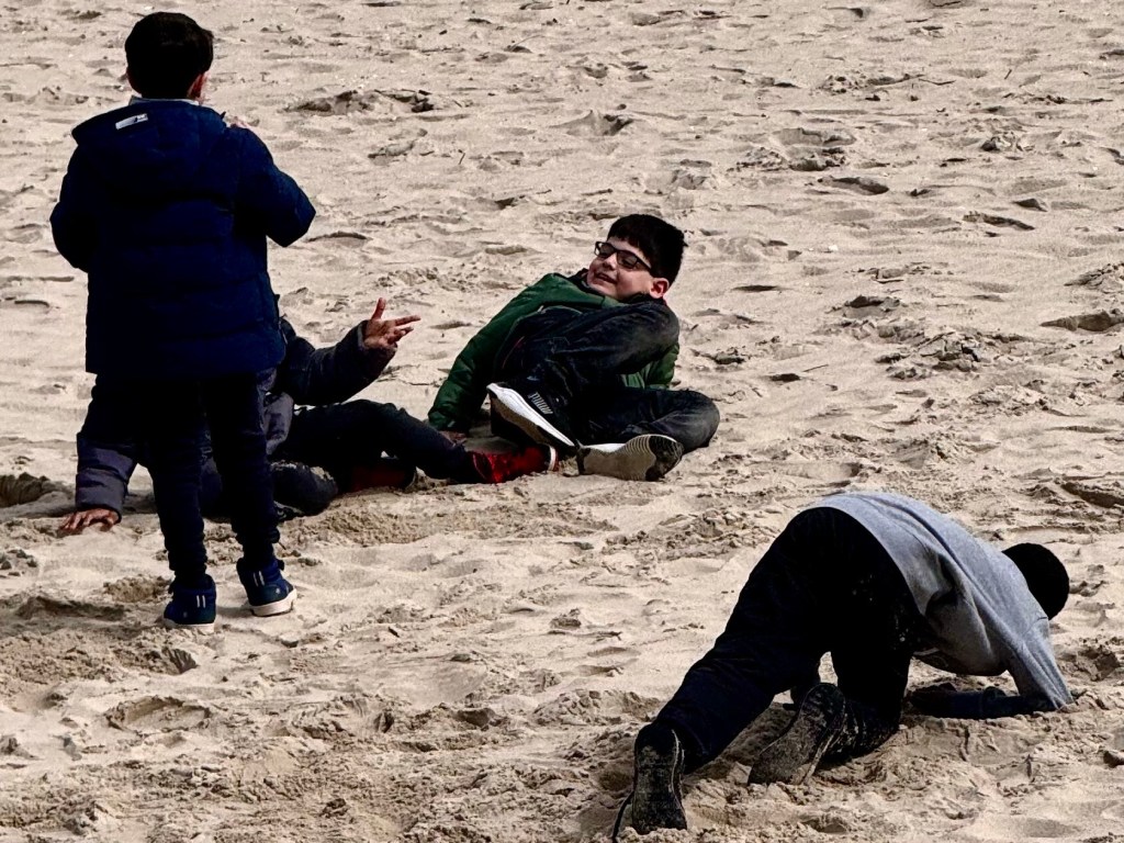 The bus ride ended at the harbor. I don‘t know what downtown Hornum looks like, if there is a downtown. The beach at Hornum is very wide with fine white sand with small seashells. I collected some Hornum sand and sea shells as a connection to Kathe‘s class visits here to give to Susie.