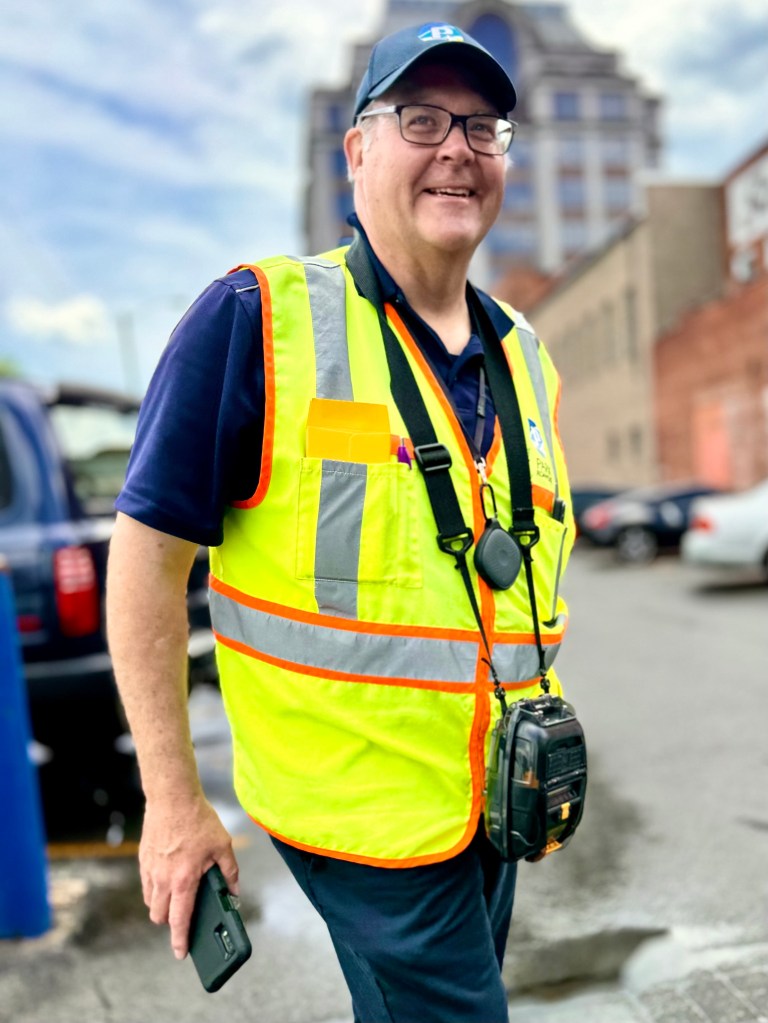 We walked around downtown Roanoke we saw a wierd especially equipped car with cameras in front and behind. We wondered if it was a Google Maps car. But no, it was an ingenious car for catching people who overstayed their hour in a one hour parking zone. When the uniformed driver stepped out, a genial man with a wide smile, we learned that his camera loaded car automatically checked the one hour parking area for license plates and the position of the air valves on tires as he slowly drove down the street. If the air valve connected with a license plate was in the same position after an hour then the car was written a citation. It seemed a little insidious to us, but his smile was a sign that he loved his job and that each citation gave him joy. Then we drove on to Charlottesville.