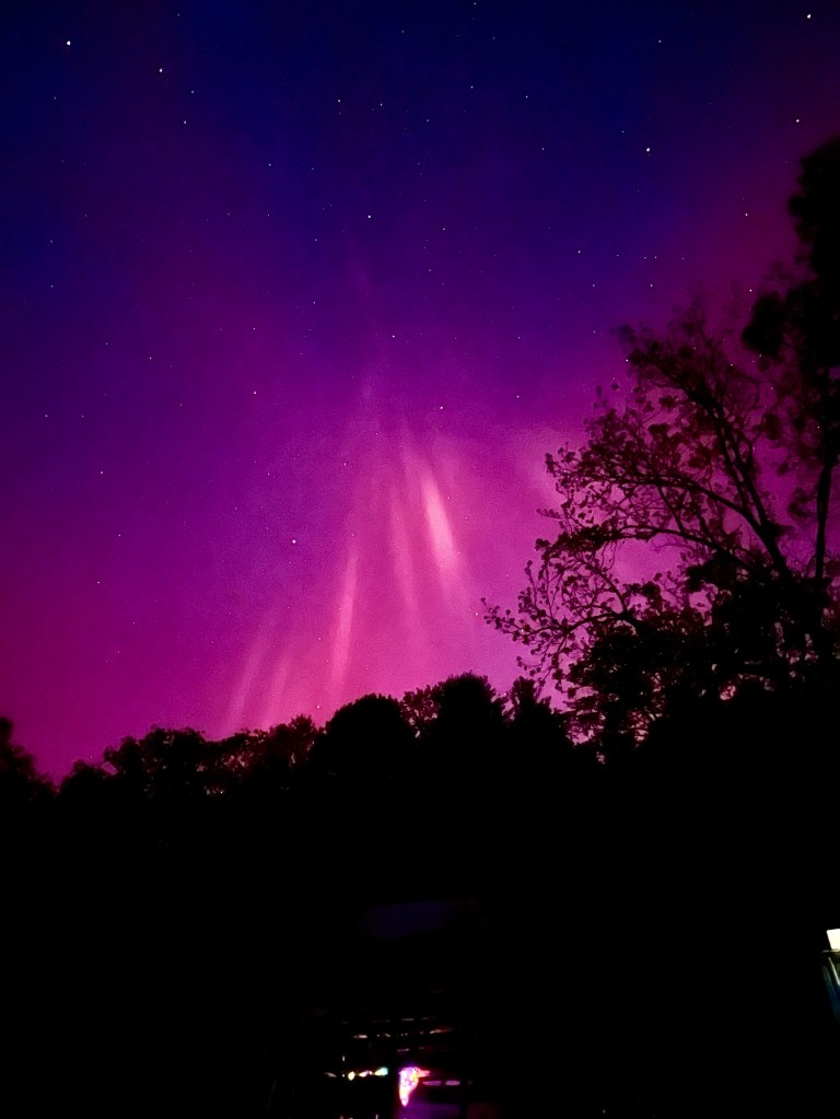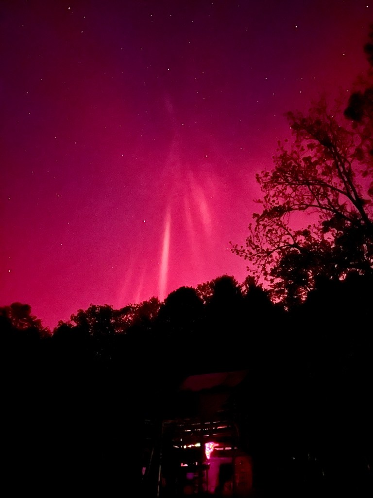 I know that Susie and Todd, years ago had seen the flashing of the aurora borealis from their dark hollow in Madison County. But I didn‘t see it. This time we were warned that huge storms on the surface of the sun were sending out huge flares millions of miles across and that these flares would cause electomagnetic disturbances in the atmosphere here on earth. Usually this only happens in the far north in the endless frigid winters near the arctic circle, but this time it was going to creep all the way down to North Carolina and even Alabama and in the warmth of May when it is comfortable to stand outside and look for it.