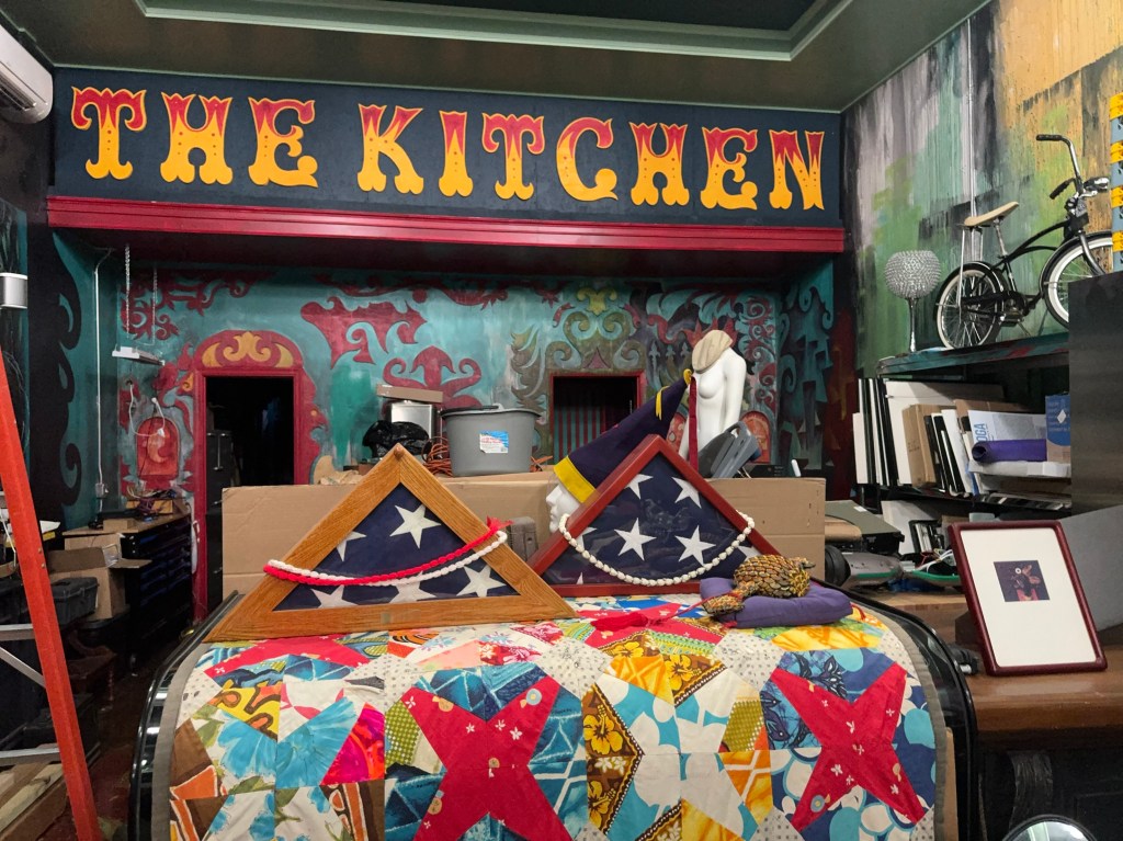 On our way back along Main Street we ran into Karl Koga who grew up in Hawaii and Japan and who lived for years in Raleigh. He visited friends in Marshall, fell in love with the town, and after looking for a building to buy found a two story brick building where he lives on the top floor. The bottom floor was a movie theater with comforatable sofas at one end and all kinds of interesting objects on the other. We began talking with him on the street and he invited us in. I took a bunch of photographs.