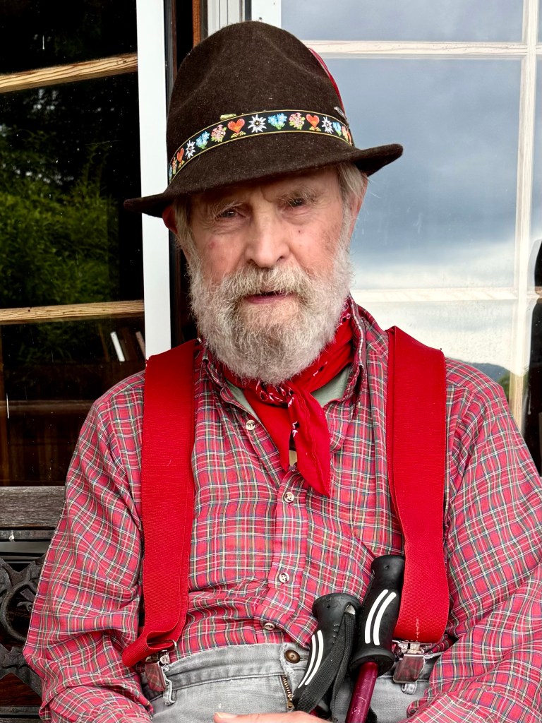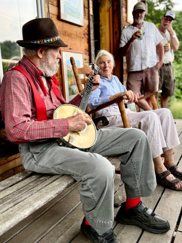 We looked at all the paintings but then, without our knowing what was coming, Peter Gott, whose memory is leaving him but who could still play the banjo and remember the mountain ballads, his daughter Susi, who sang beautiful harmony and played the fiddle, and Larry Norton, who played the guitar and had a marvelous voice, sang mountain ballads. I recorded the whole thing in spatial video.