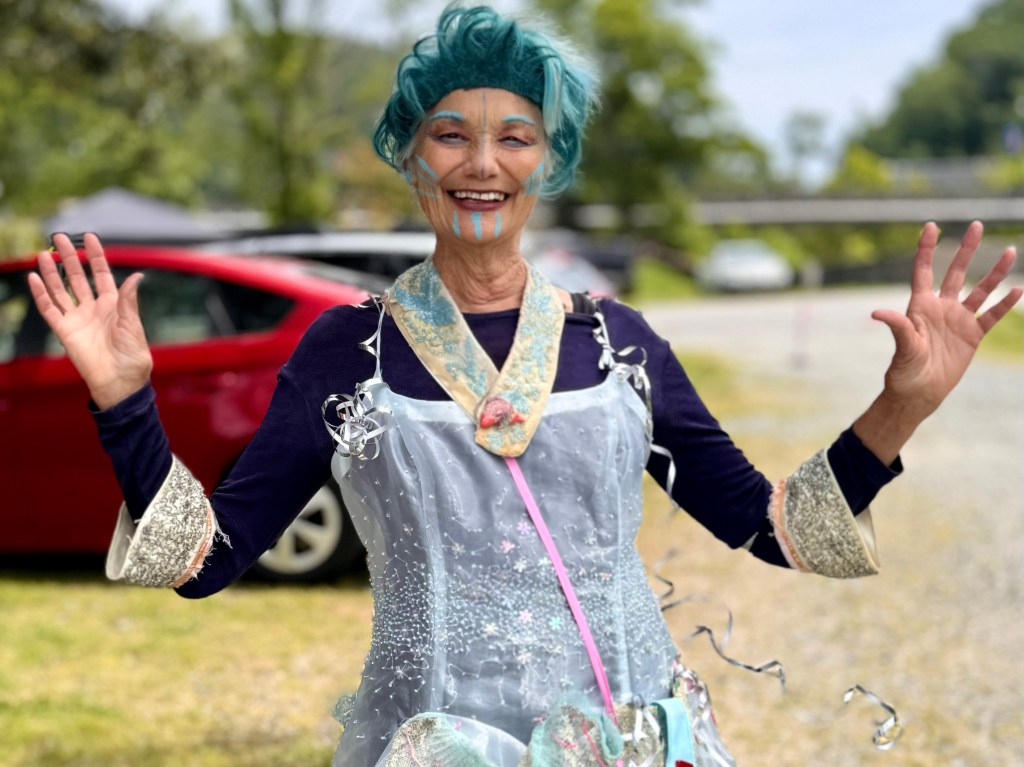 The idea of a Marshall Mermaids and Pirates Parade was dreamed up in 2009. At that time it was a very short parade with few participants. But the idea caught on. It turned out that the people of Marshall and all around liked the idea of dressing in outrageous costumes and strutting their stuff. Children loved getting their faces painted and dressing up as mermaids and pirates, but adults did too. This year the town was full of people of all ages, very young to very old looking silly and loving it, who were both spectators and participants in the floats that went down the Main Street.