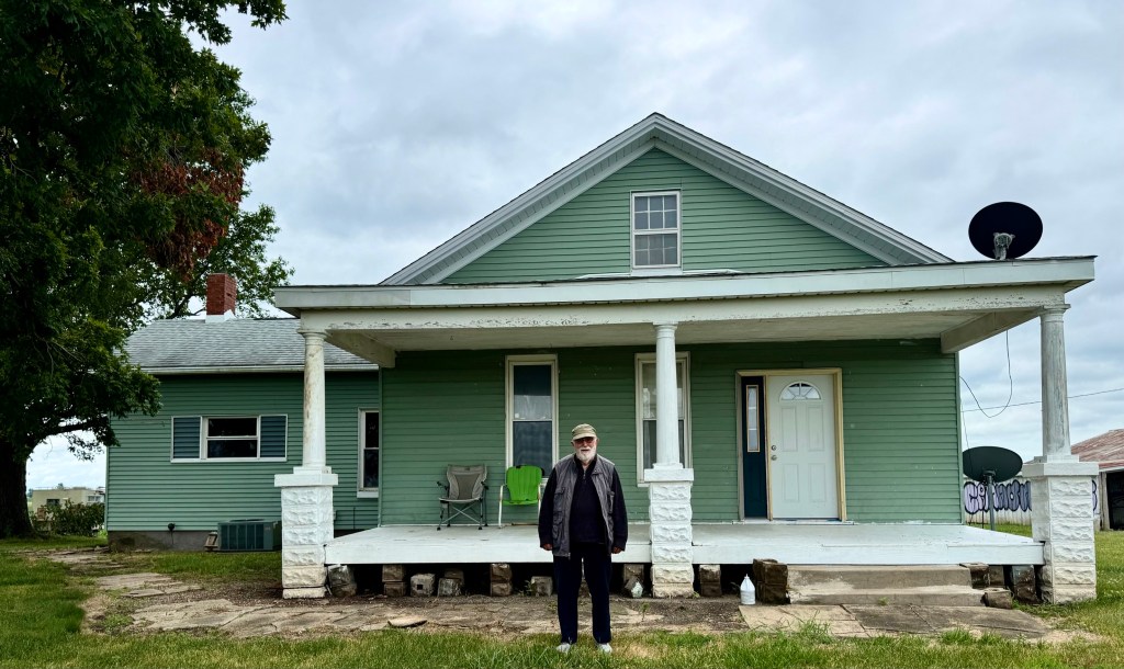 For the next two days we drove through endless alternating fields of corn and soybean that extended to the horizon. As a boy my family had lived for awhile in Orland Park, outside of Chicago, where my father was working on his Ph.D. at the University of Chicago. During this time we would often visit my father’s parents home in Urbana, Illinois and my mother’s parent’s home in Buffalo. Then we went off to India as missionaries for seven years and in the years following our return we would drive out west to Illinois, before the arrival of Interstates driving in non air conditioned cars with all the windows open in the sweltering heat through town after little town which slowed the trip down a great deal but also allowed me, as a boy, to get a feel for small town rural Illinois and Iowa. In those days, first in the early 40’s and later in the late 50’s, the small rural towns we were passing through were thriving with the business of prosperous farmers and on Saturdays were crowded with shoppers. A trip into Buffalo, the small town outside of which the Fred Hall farm, my mother’s father, was on a slight rise in the flat Illinois plain which we called Hall Hill, was great fun.