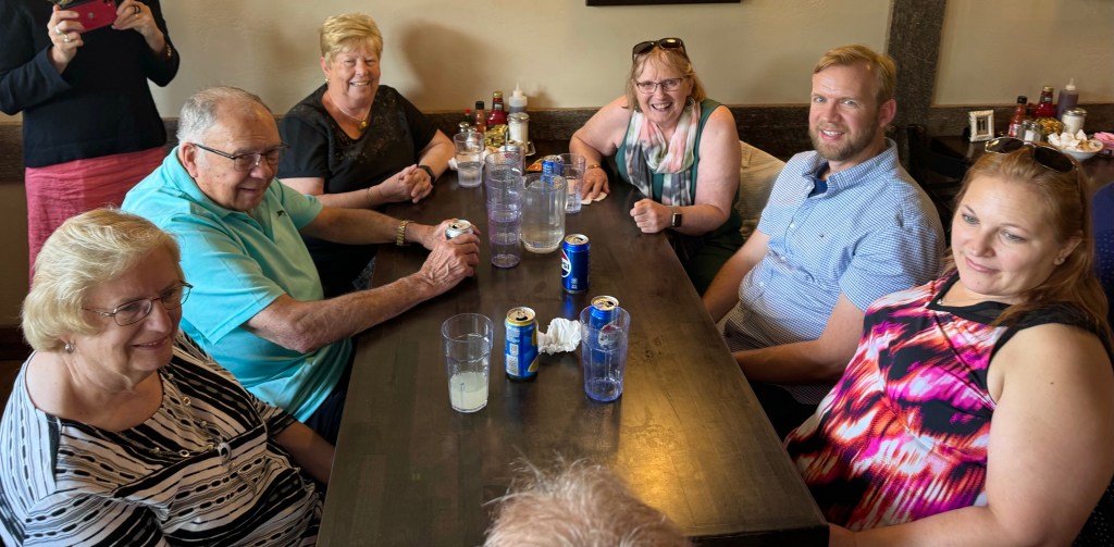 I videoed the service. And then after the service when everyone gathered in the cemetery across the street I made another video of the people gathered in a circle as the ministers read passages from the Bible and Norma Lea’s ashes were buried with her grandsons shoveling in the earth to fill the hole. After the service most of the people attending the service met in Iola at the Crystal Cafe for a meal together. Although I had trouble sorting out the different family members I realized that family gatherings like this are rare and that it was important to photograph as many people as I could.