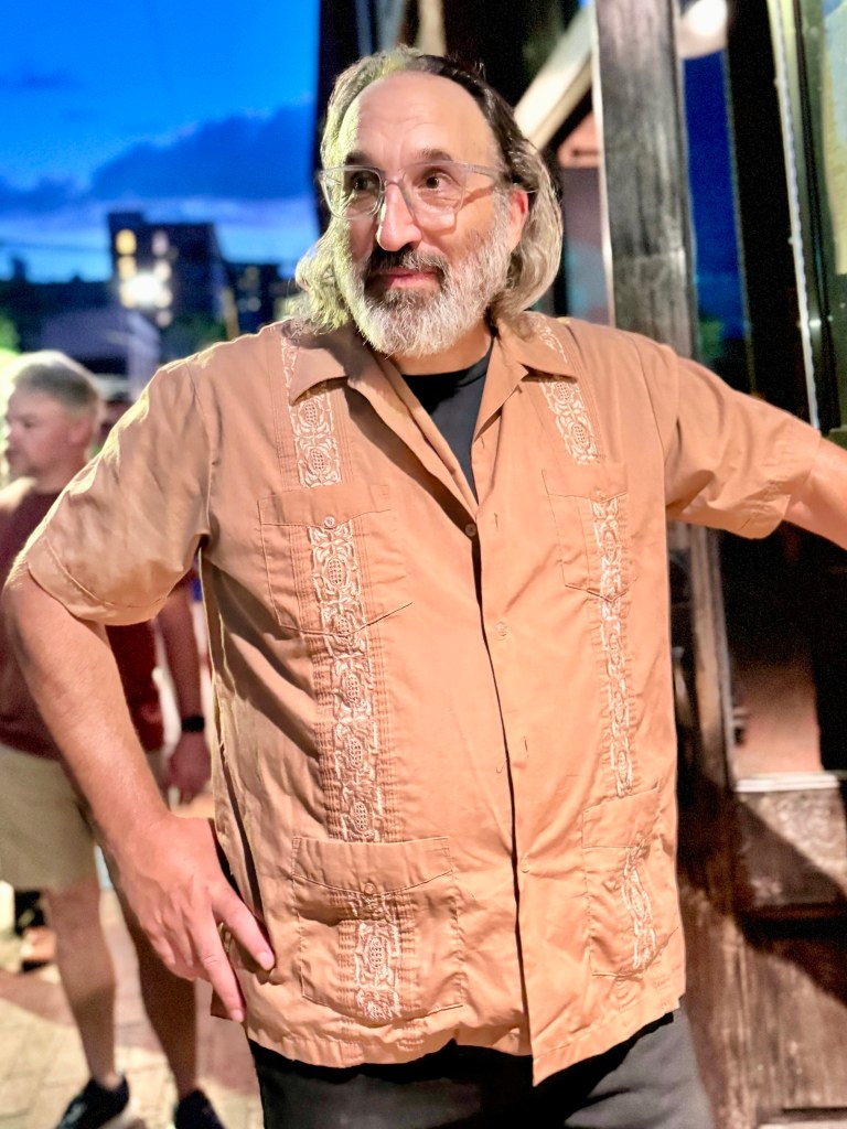 Some of the band members were outside on the sidewalk taking a break and invited us in to listen to song or two. They all have respectable day jobs, but Thursday night at 5 Walnut is their chance to fly. Inside the crowd was pumped up and joyful. I pushed my way right to the front and made a spatial video of the band and people dancing, which even in the low light, turned out well. I am including it here.