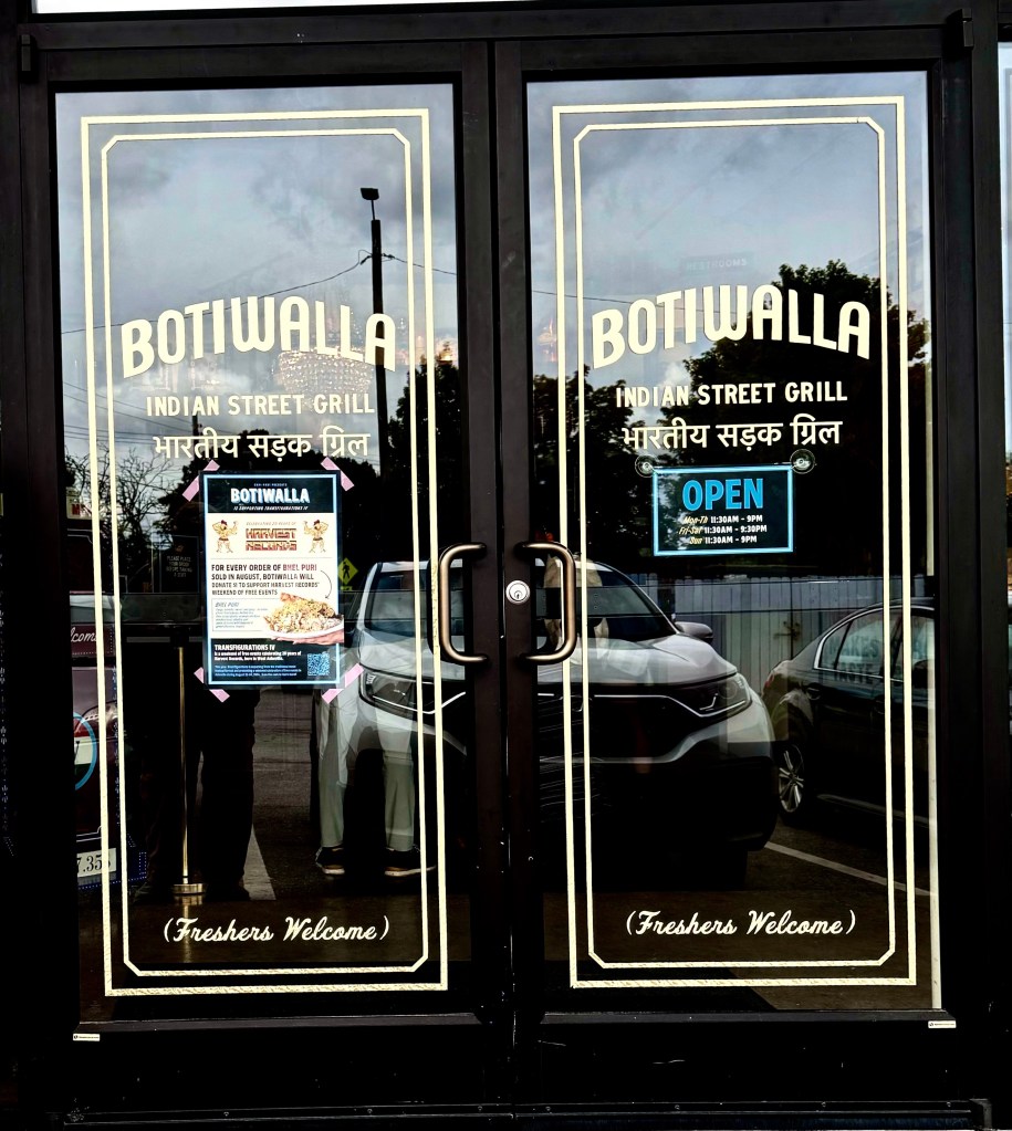 Susie and I went to Botiwalla for lunch today. I am lucky to live in a town with a large number of Indian restaurants. Among them are my favorites, the restaurants of Maherwan Irani, a James Beard Award winning Indian born chef, Chai Pani and Botiwalla. Both of them have authentic Indian food and both of them a have true ambiance of being transported to India with garlands of marigolds and little details like informing you that the toilets are western style toilets and not the squat toilets of India which no one in Asheville would know how to manage.