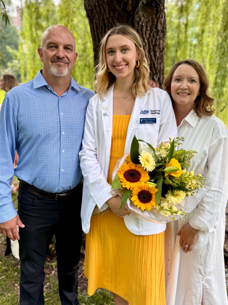 I had no idea what a White Coat Ceremony was except that it is when medical students were given the doctor’s white coat as a sign that they were about to be doctors. I somehow thought it would be in a Tufts auditorium with somebody handing out white coats.
