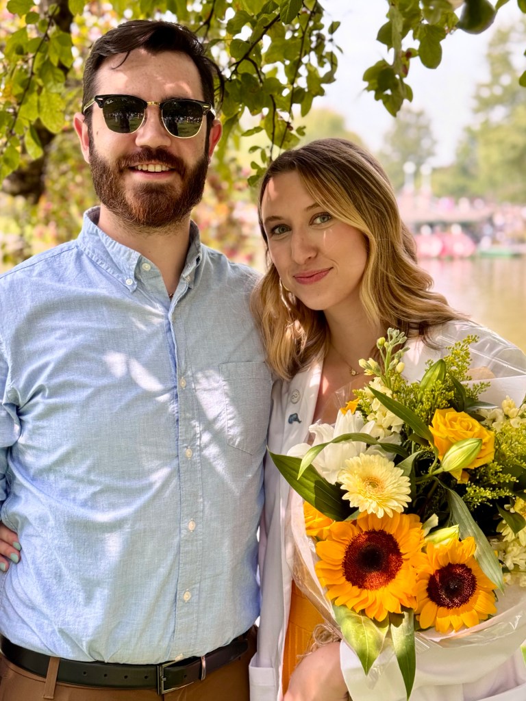 The ceremony turned out to be a huge deal, with a stage full of doctor teacher mentors and the Indian born president of Tufts giving a short speech. The keynote speaker was a young, maybe 35, former graduate of Tufts Medical School whose advice to the future doctors was so moving and so well delivered that we in the audience were really moved. He told stories from his medical experience which illustrate the ability as doctor’s to admit when you were baffled by symptoms and had no knowledge of what was the matter, to realize that sometimes a patient needs understanding more than medicine and that patience and caring for your patients was as necessary as medical advice. It was a wonderful, very personal, speech.