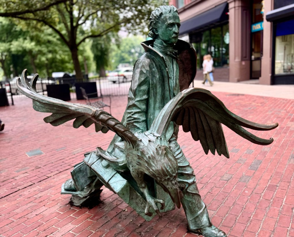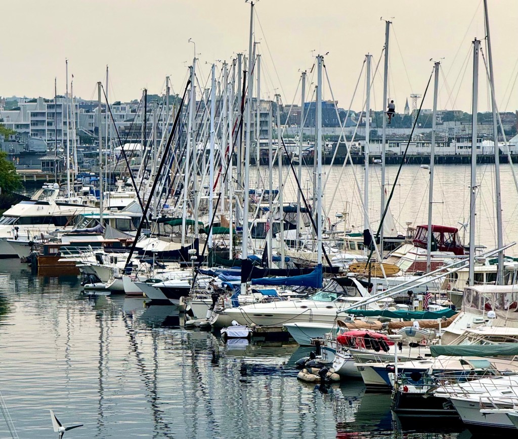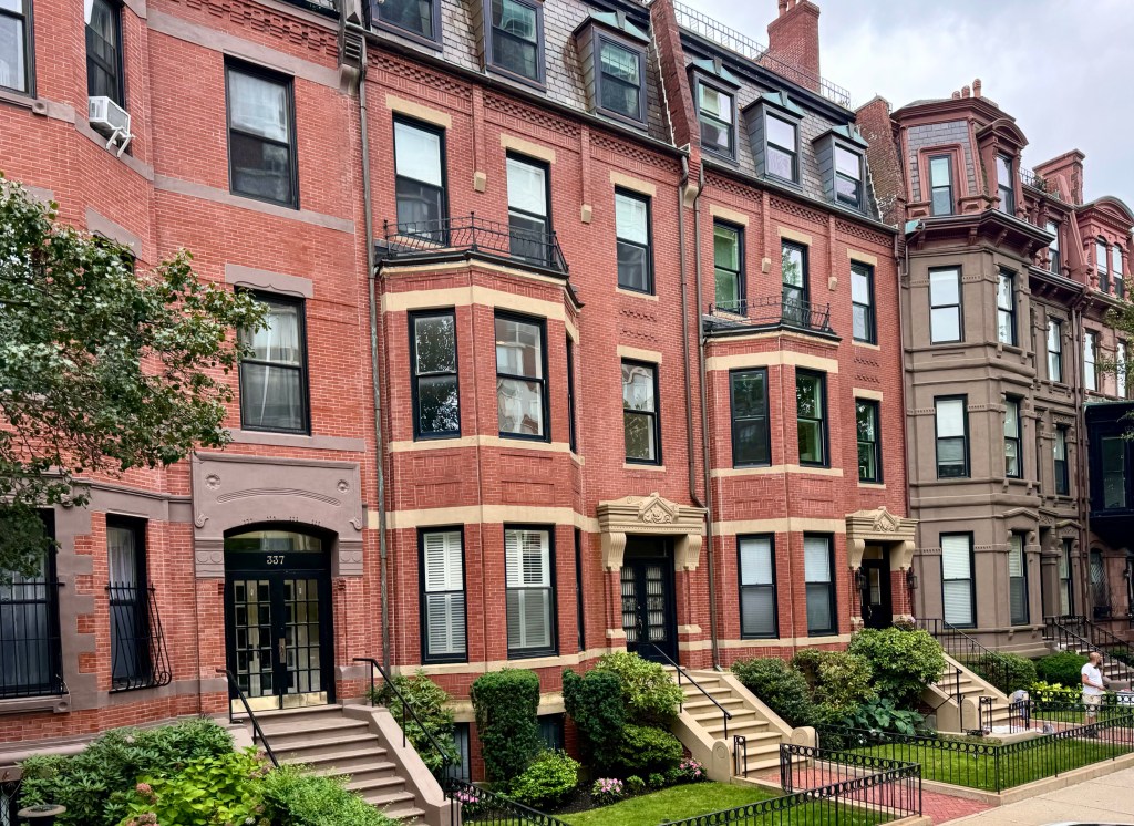 Today I am in Boston for the White Coat Ceremony when my granddaughter Caroline receives her doctor’s coat at the beginning of her medical training at Tufts Medical College. It also includes a visit to Boston, where I have never been. I flew in very early, up at 3:30 to catch a 6:30 flight on Allegiant. I spent the morning first finding my way into Boston from the airport, taking the first free bus to South Station, without having any idea where it was, because I couldn’t find the 66 bus to the ferry to the Aquarium. Luckily, the walk from South Station to the Aquarium turned out to be an easy walk and the Hop On, Hop Off Bus that I had bought a ticket for was just ready to begin the tour. So I got to see a great deal of Boston and from the open air up deck to take photographs. From the bus we saw famous landmarks from a distance, but what most struck me about Boston were the streets of narrow 4 story red brick elegant houses squeezed shoulder to shoulder down the street. They reminded me of the town houses of London or the town houses of Haarlem, Netherlands and could almost have been in a painting by Vermeer.