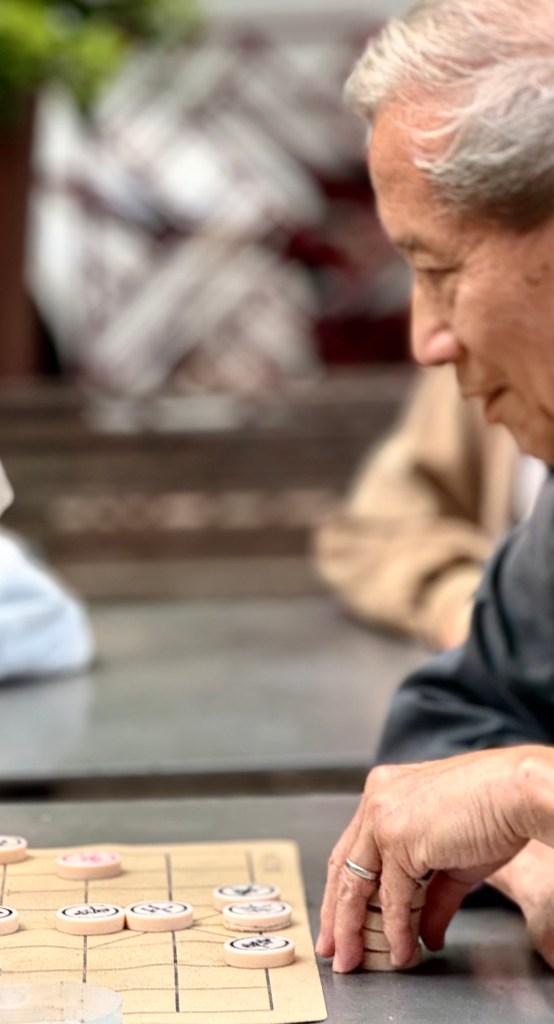 I met my granddaughter Caroline in Chinatown and we ate Dim Sum in a traditional Chinese restaurant filled with Chinese people and then watched Chinese playing card and board games in the park.