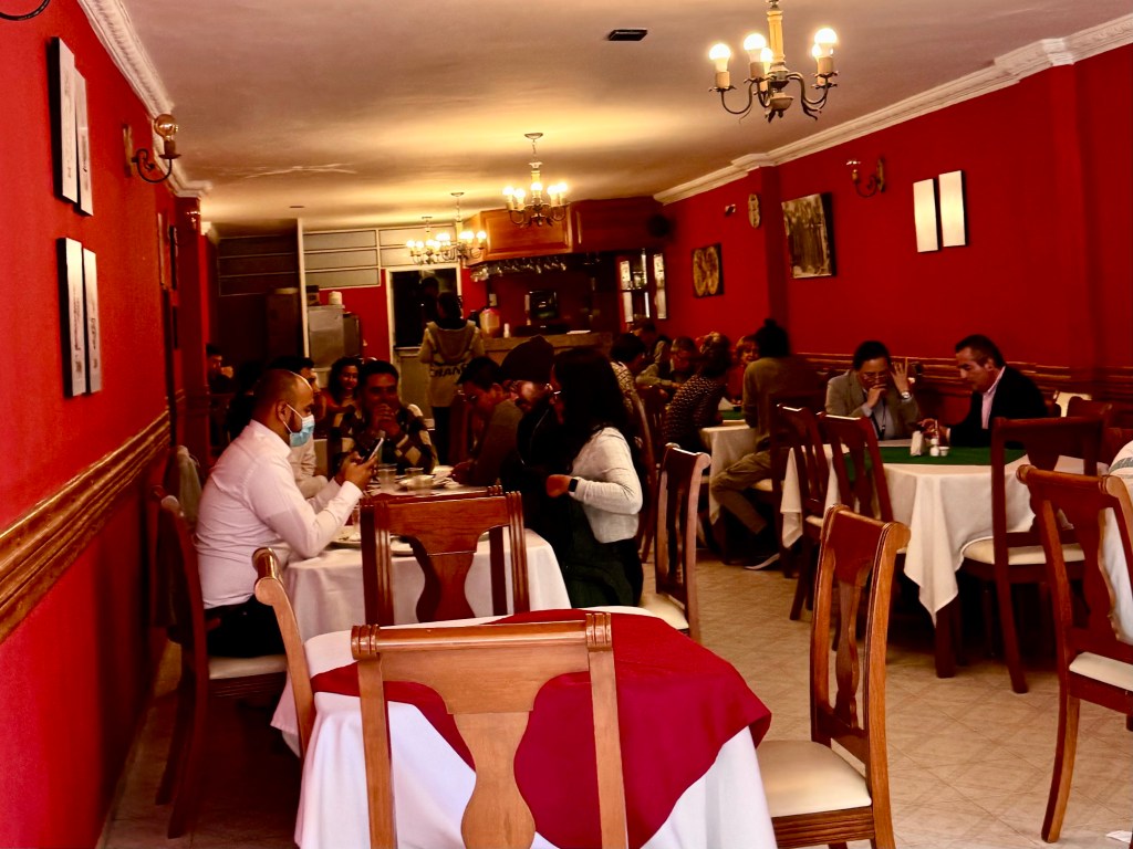 We ate at a small restaurant where a standard meal was orange juice, vegetable soup and a combination of roasted chicken, mashed sweet potato and rice for less than $6. I brought half back for supper.