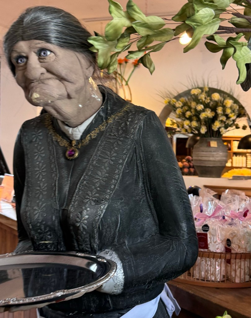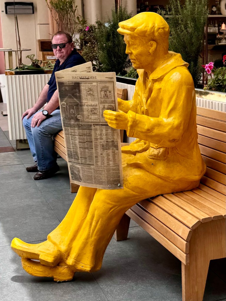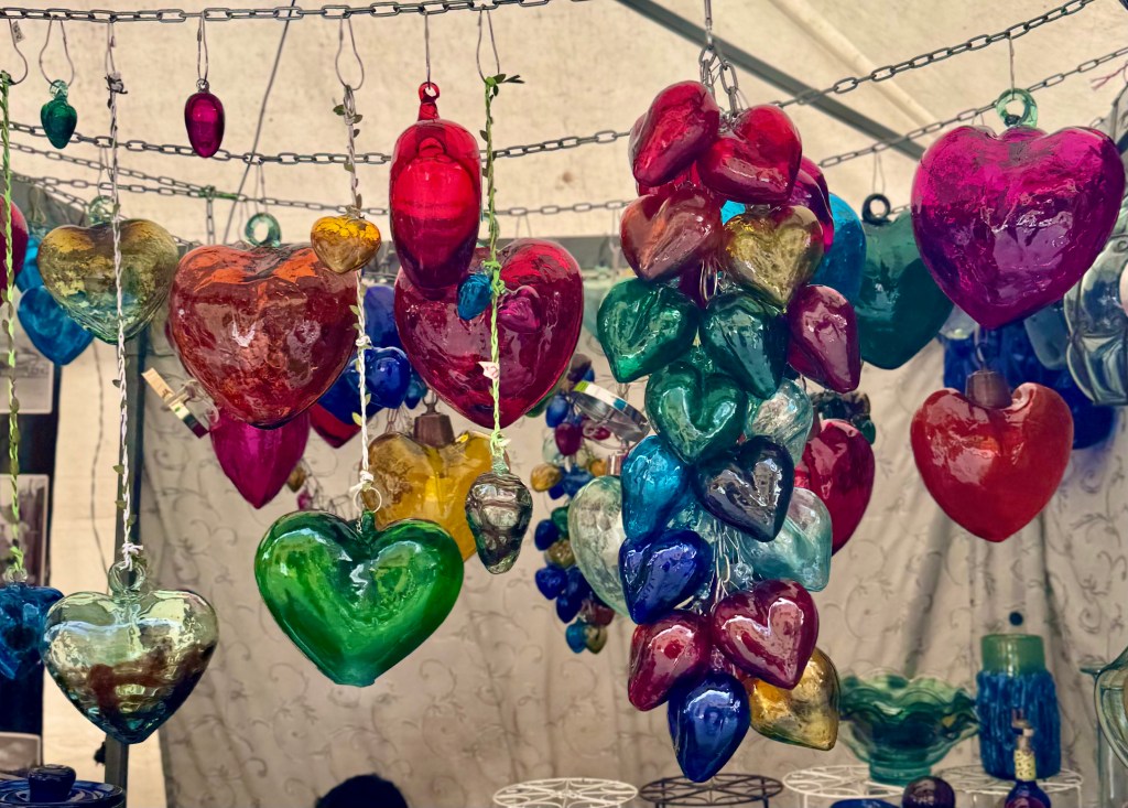 But it was worth the ride because the outdoor market in identical white tents with umbrellas of all colors suspended above the road was stocked with all kinds of beautiful wares tastefully presented. We walked slowly through the market and then had lunch if a very elegant restaurant.