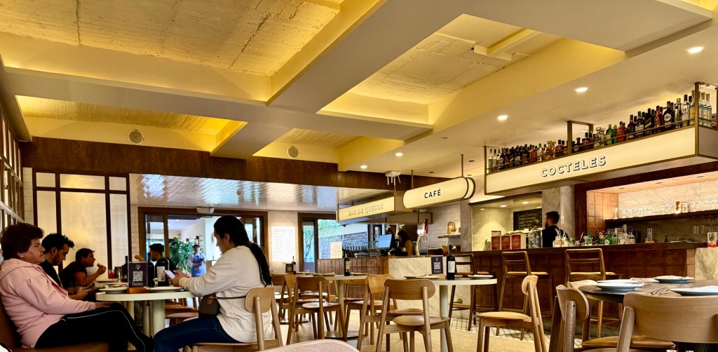 Susie discovered an upscale market in well to do part of Bogata. Instead of walking we took a taxi, which is lucky because it took us most of an hour to get there through traffic that was stop and go on the bypass that took us around the center of town. Part of what slowed us down was that we passed three accidents with motorcycles lying in the street beside a damaged car, waiting for a police report, I guess. And it was easy to why there were so many motorcycle accidents because while taxis and cars inched along, motorcycles snaked in and out of the lines of cars as they raced ahead.