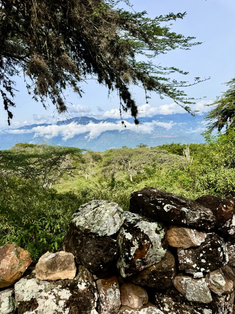 On Thursday Susie and I got up early when it was still cool and skipped the breakfast that Casa Blanca, our hotel in Barichara would provide us, to hike down the Camino Real ancient trail to the beautiful old village or Guane. It was only a 4 1/2 mile hike but my 87 years caught up with me. The first mile to the head of the trail was uphill and I was tuckered out before starting down. The first mile of the trail was straight down.