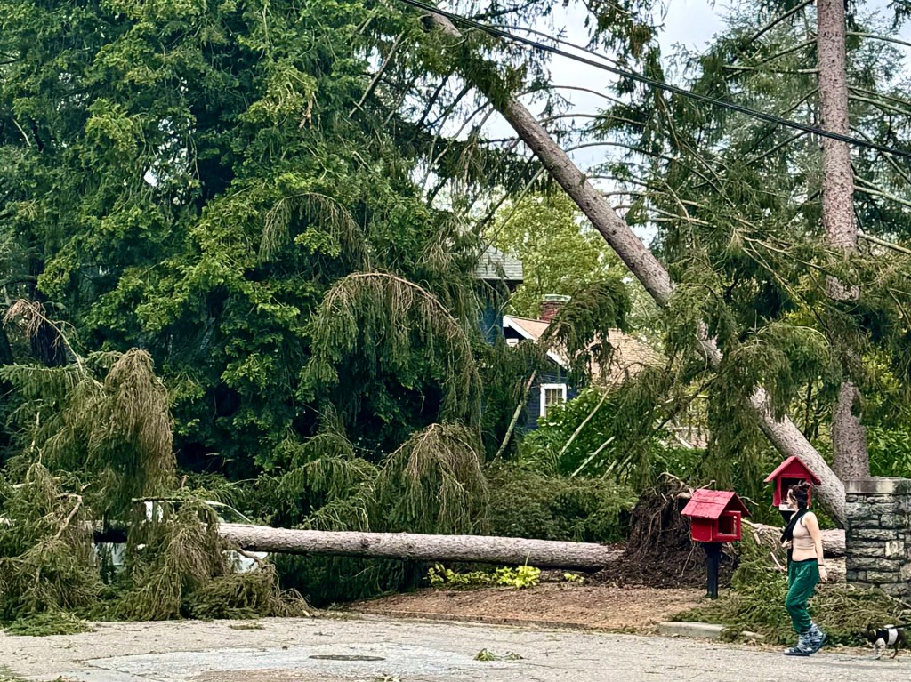 Today, a day after the hurricane, we drove around north Asheville and Montford stopping at the bridge across the French Broad River to marvel at the swiftness and high level of the river in which the roofs of some of the buildings such as the the roof of Second Gear second hand camping equipment store were all that was visible of the building and then the bridge over the Swannanoa where a huge hole 10 feet deep had been gouged by floor waters out of River Road which showed us that all the stores along River road, which runs along the river, must be destroyed as well.