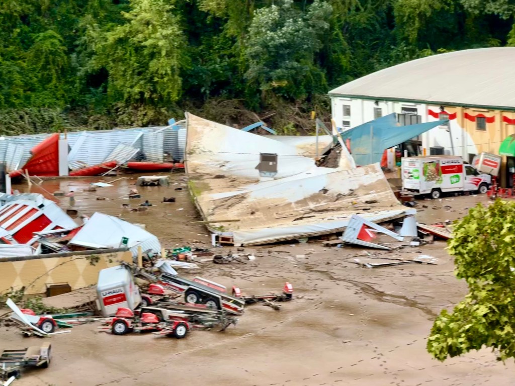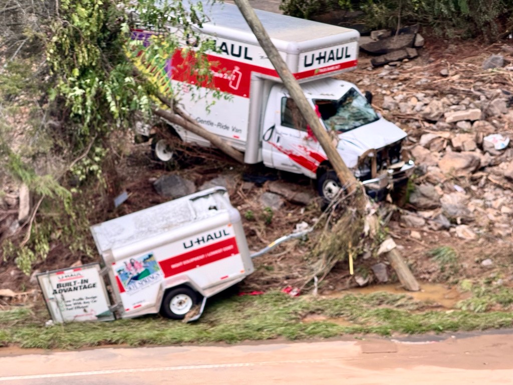 We even drove as close as we could get to closed off Route 70, the highway we use all the time, which was now closed at Swannanoa were we could see the deep mud along the highway and the ruined stores of Swannanoa. I took a lot of photographs, almost as a curious tourist, while only slowly was the extent of the devastation beginning to sink in.