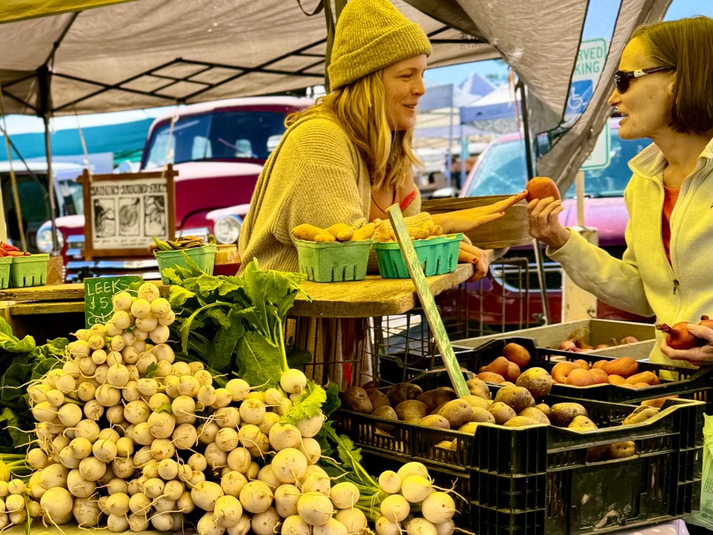 The mood at the Farmer’s Market was almost joyful. The market was an escape in the sunshine from the gloom of the last two weeks since Helene struck. It was a chance to be out in the sunshine in colorful hats and fall clothing, to meet friends and tell stories and to buy fresh bread and fruit and vegetables and honey and to get hot food from Cecelia’s food truck. I met Martha Nelson who went to India with me years ago, now a yoga teacher, who invited me to join her in San Miguel De Allende in January when she is holding a yoga workshop. That brightened my day. The entire Farmer’s Market brightened my day. In the afternoon I drove with Susie to her cabin near Marshall where I would stay for a week with clean spring water, an outhouse that didn’t need flushing, electricity and even an internet connection while in Asheville there was still no water, or a good cell phone connection or Internet.