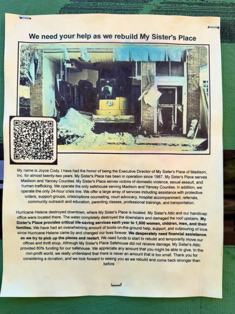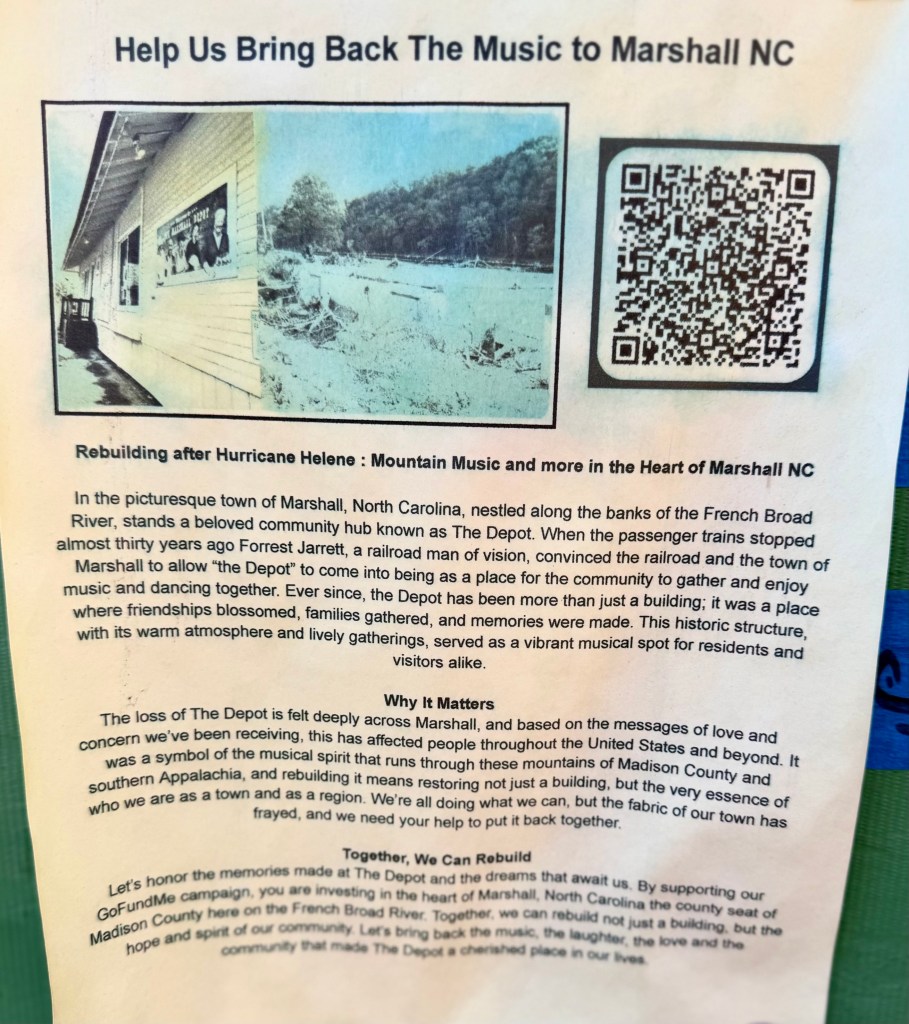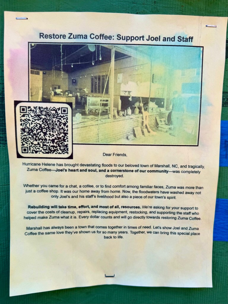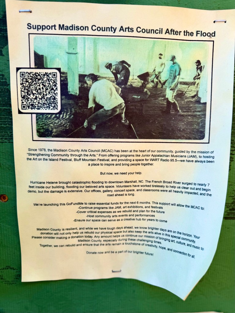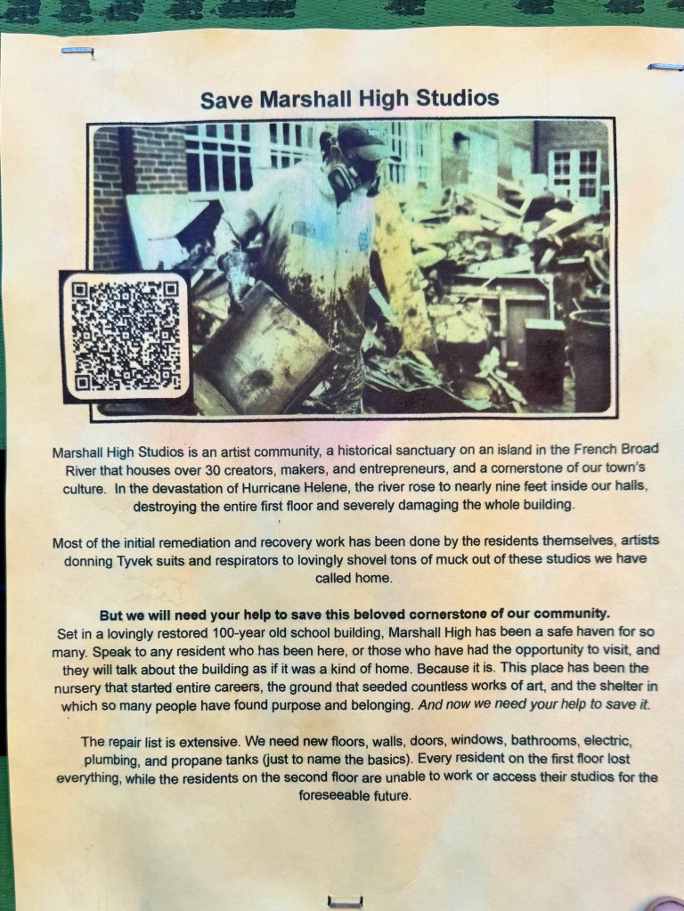 On a wall at Nanostead, the staging area for volunteers who are helping Marshallclean up the mud, strip the wet sheet rock and redo the wooden floors are a great number of pleas for help in rebuilding. I am only showing a few of them here, but these flyers, now fading in the sunlight, indicate the tremendous need for support as Marshall rebuilds itself.