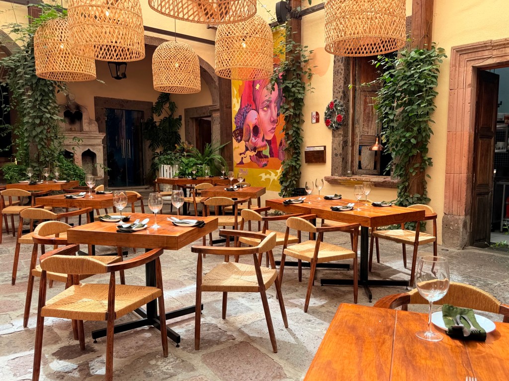 Today Martha took me along to a meeting with a man, Pascal, who is going to do a couple of musical performances and art tours, one for each of her two groups. We met in La Cabre Illuminada, a very nice vegan restaurant which is downstairs from the Airbnb that I will be moving to for two weeks on Tueday. San Miguel de Allende has a large expat community, about 10% of the population, mostly from the United States and Canada. One man I met walking his dog had been visiting San Miguel for 17 years and then decided to move here in retirement 6 years ago. So people you pass on the street are as likely to speak American English as Spanish.