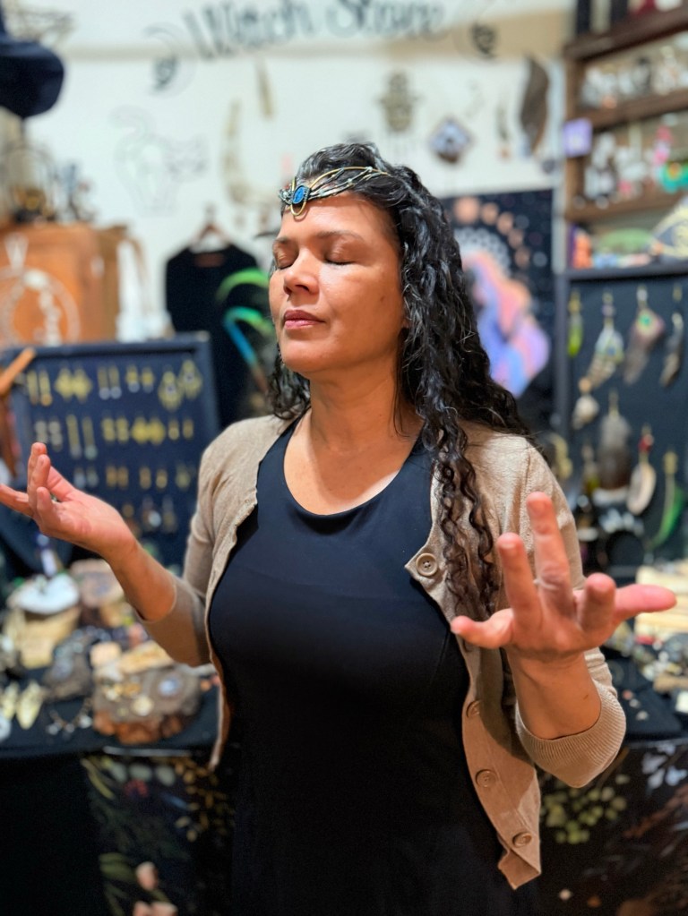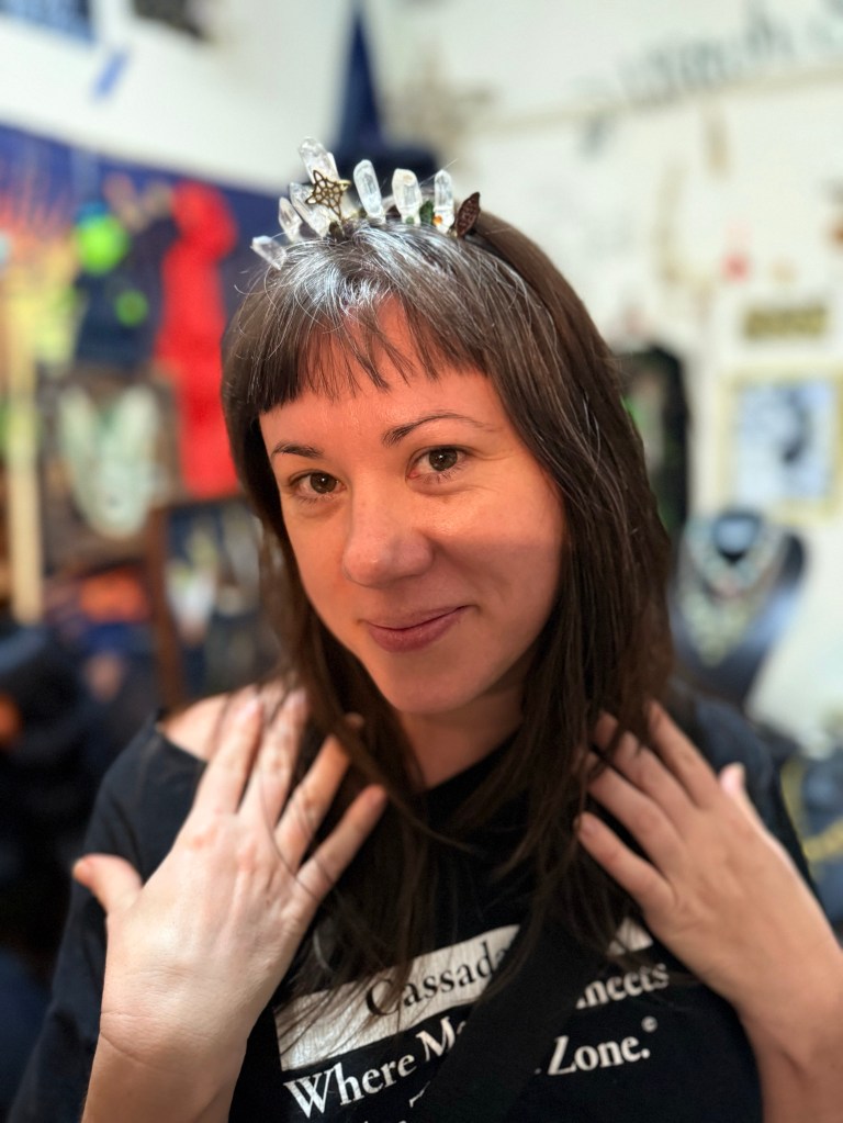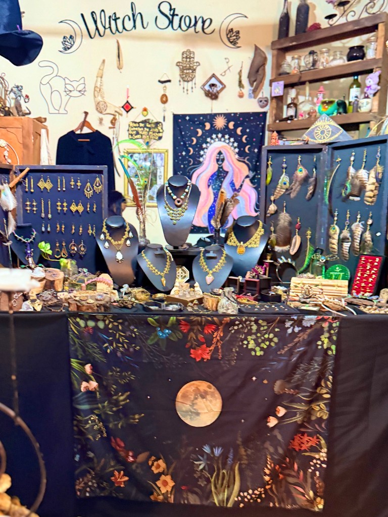 The newcomers and Martha walked to the city and back and I stayed in our mansion and processed photographs. But in the evening we headed out again to listen to a concert of some sort. But on the walk into town we passed the Witch Store where, Martha, Bevi and Kaitlyn were bewitched into trying on diadem after diadem and other jewelry until it was finally too late to go to the concert.