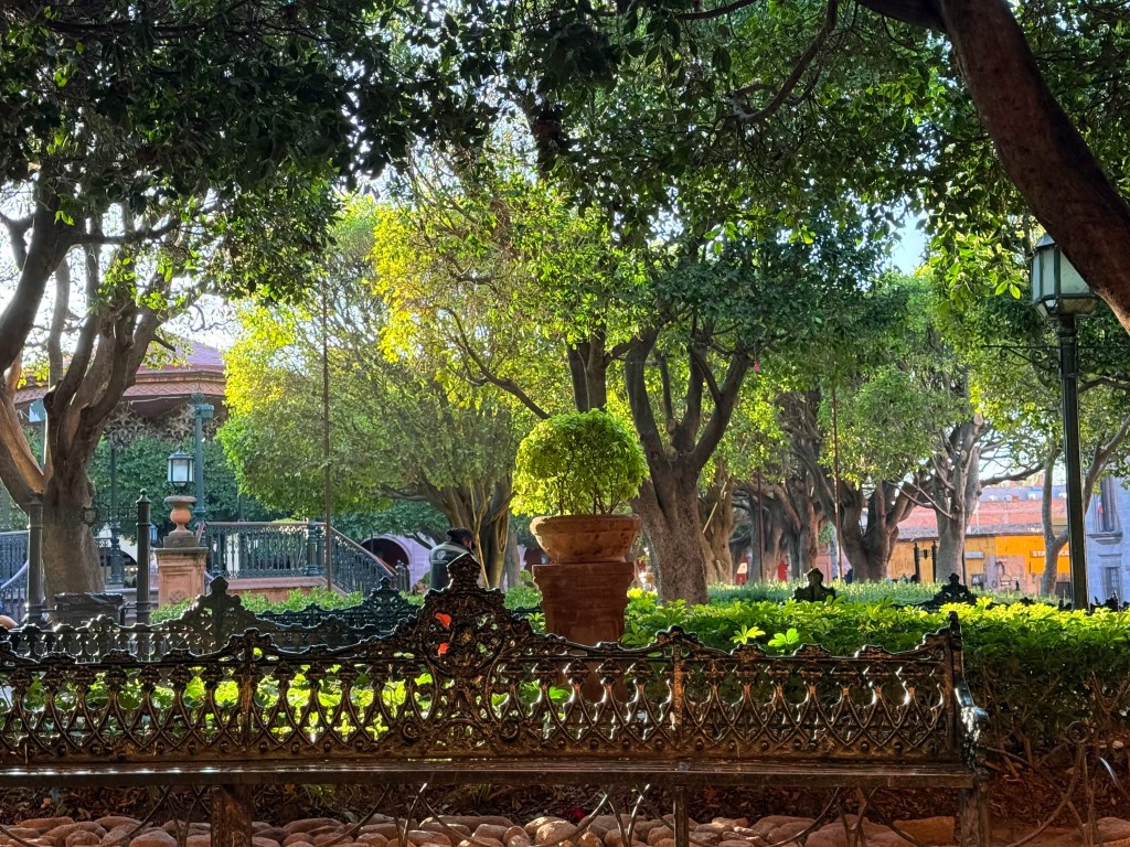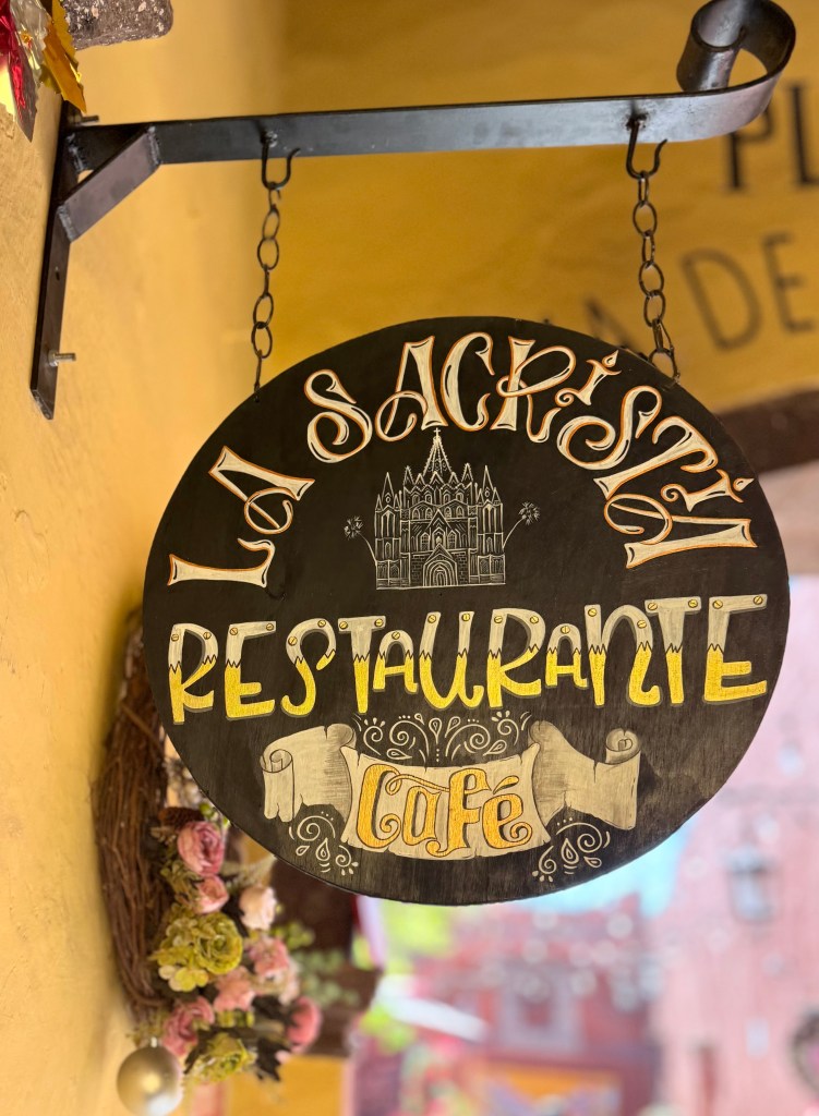 Another pleasant day. Martha, Bevy and Kaitlin brought the newly arrived yoga group downtown to do banking and I joined some of the group for lunch. We ate in La Sacrista under orange trees with oranges hanging above us and red flowers all around. The women were photographed with angels wings.