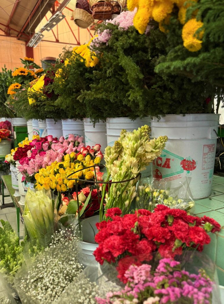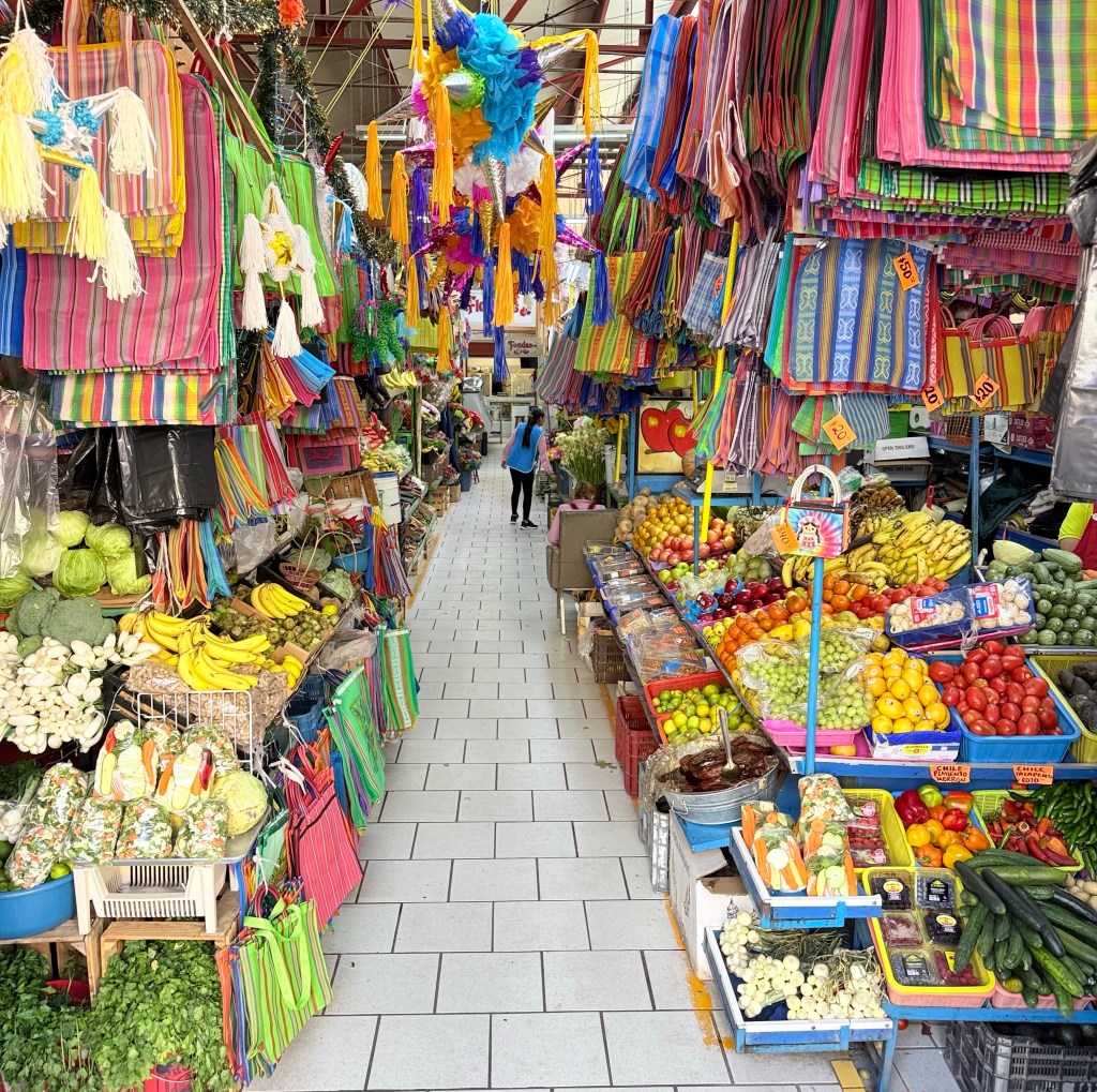 My only event of the day was going to the hole in the wall, narrow and stretching back forever grocery store, Bonanza, a short walk away, for salsa to eat with quesadillas and tacos when I bring them home and then a visit to the Marcado Ignacio Ramirez market, where I bought fruit: bananas, papaya and something bright orange.