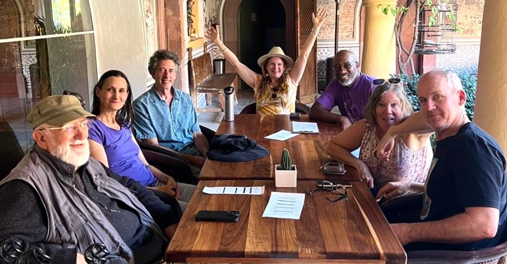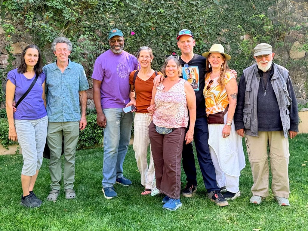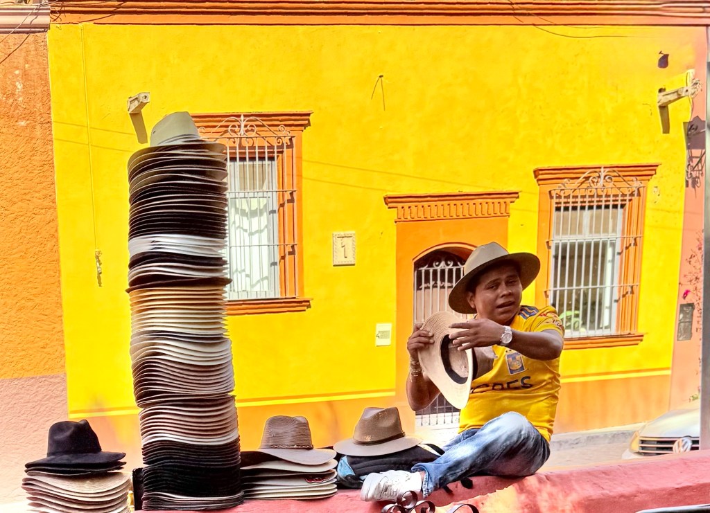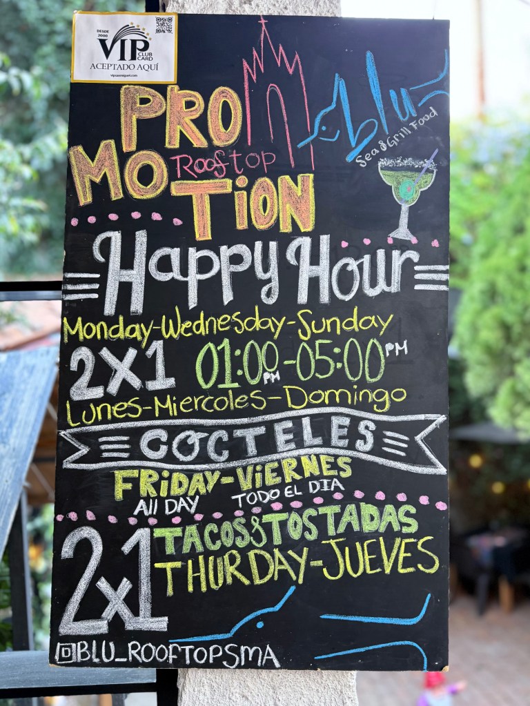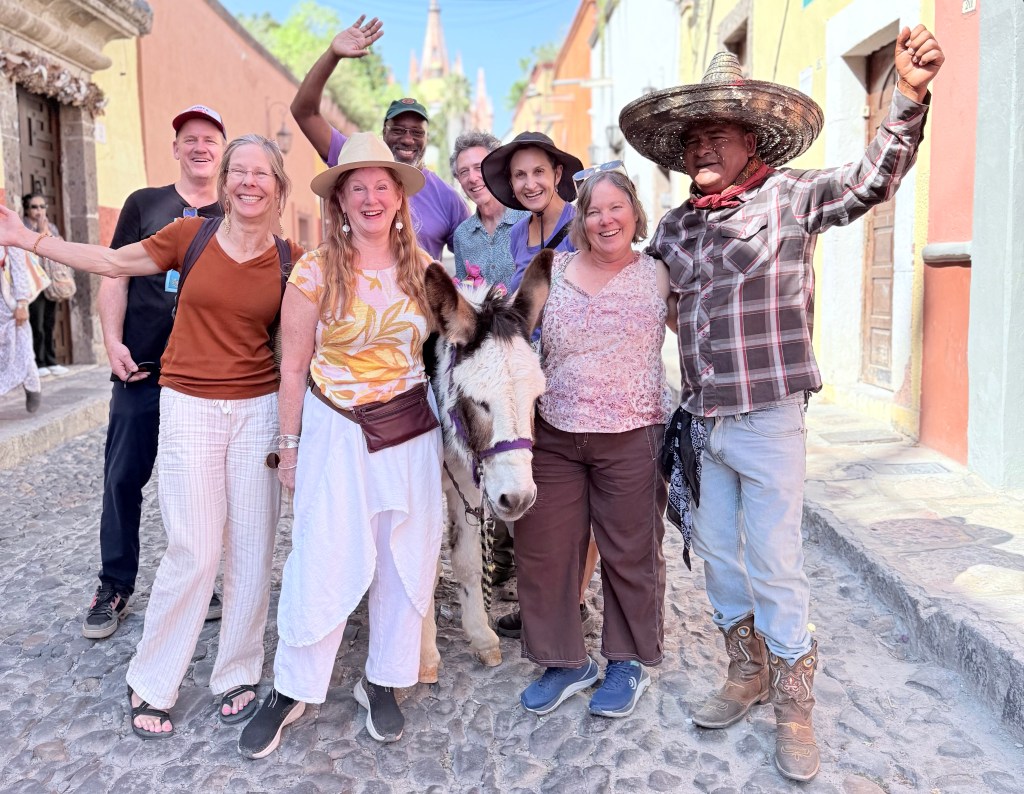 On our last full day in San Miguel de Allende we walked downtown for lunch on the La Azteca rooftop and then walked down to the large park in the center of San Miguel to a luxurious hotel where we walked through the garden and saw peacocks strolling and and a last luxurious drink in the courtyard before heading back to our house to pack.