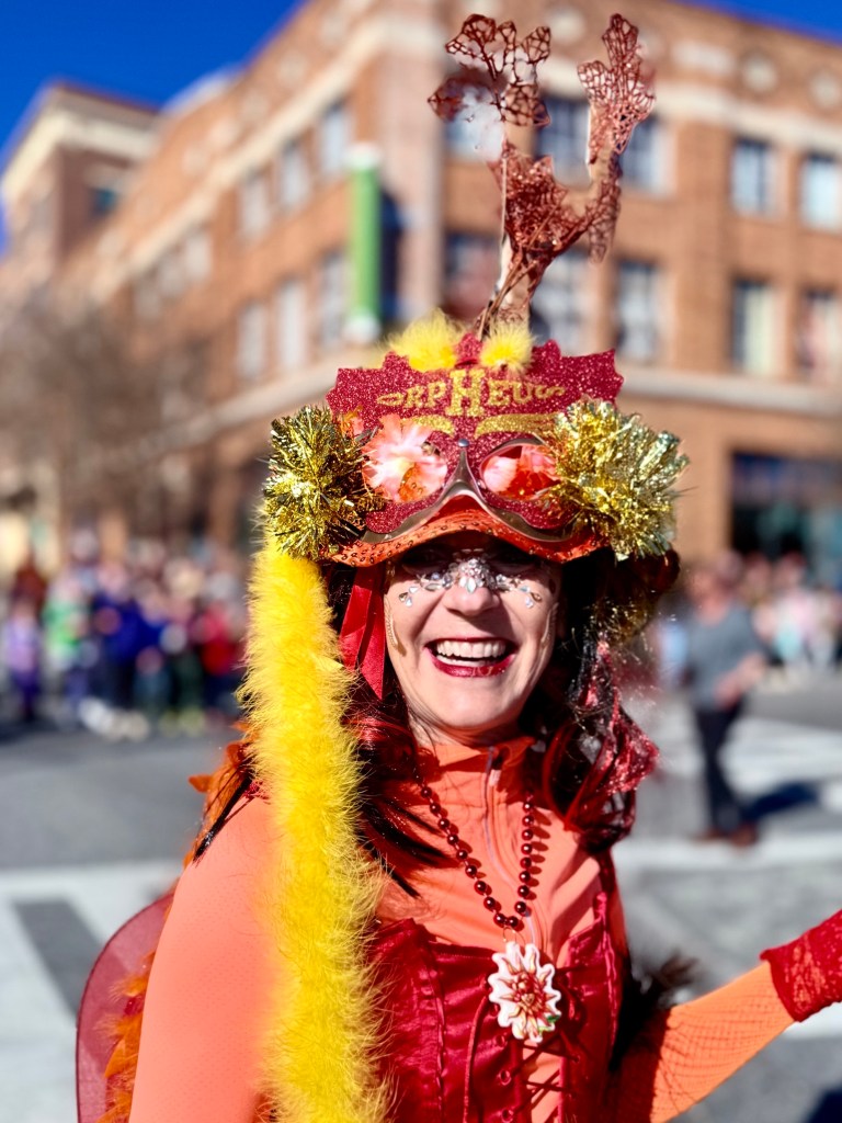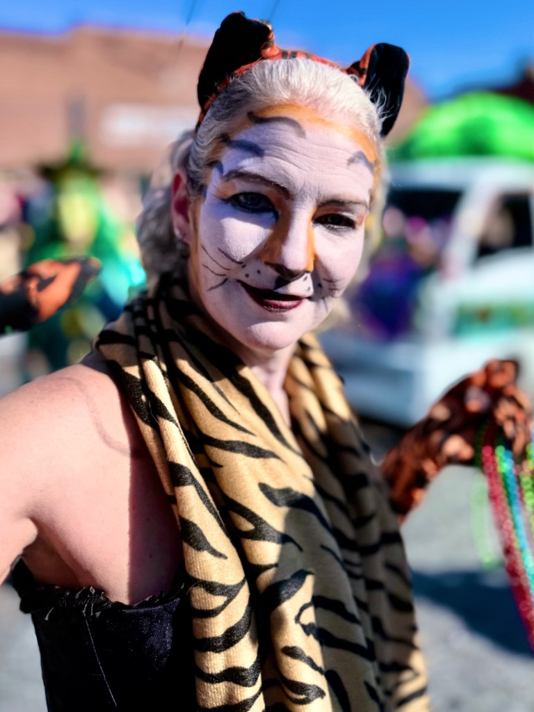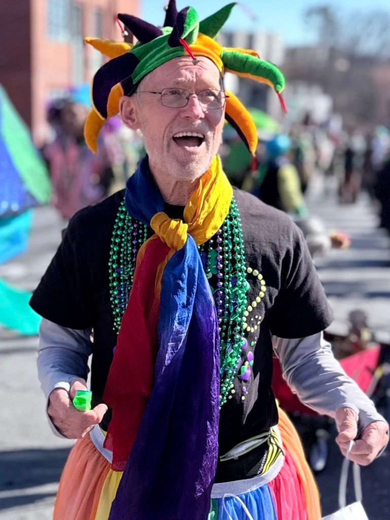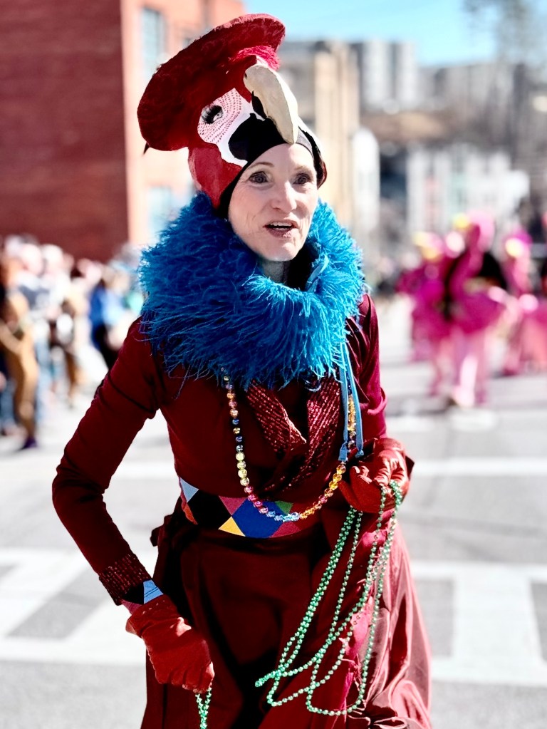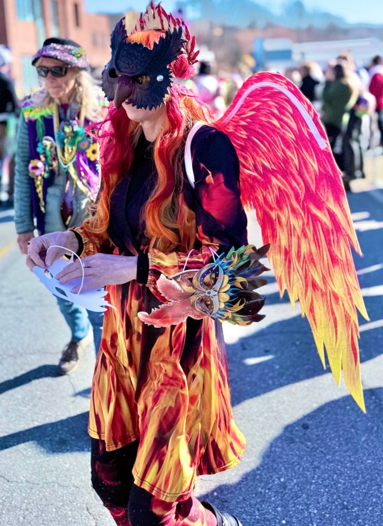 Mardi Gras is a Christian celebration at the end of the carnival season before the somber season of Lent, the 40 days of repentance before Easter. I first encountered the carnival season in southern Germany where I was in the army in 1960. In Germany large during Fasching tents were set up where people drank from huge steins of beer and were reported to dance and let loose before the Lenten season. In the United States the biggest celebration of Mardi Gras is held on March 4 in New Orleans. But Asheville doesn’t want to be left out and each year the parade gets bigger and bigger.