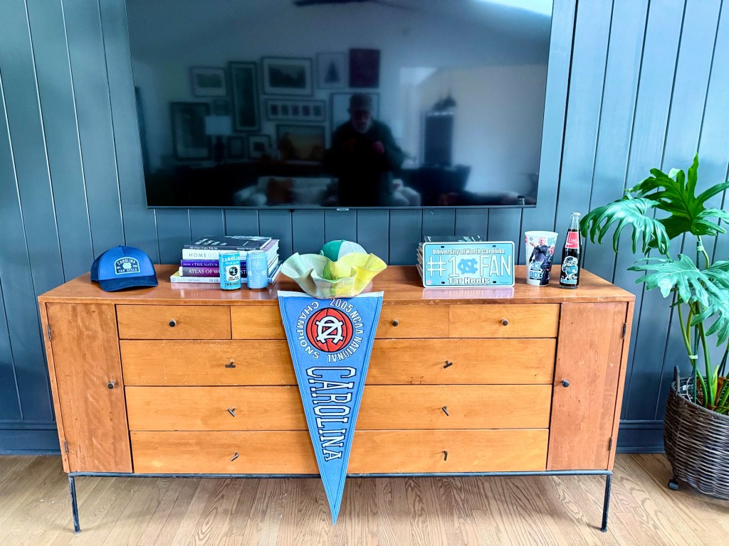 Tom set up his little altar of UNC paraphernalia under the large television screen. We sat down with great anticipation. I had a gin and tonic in my hand and Tom a beer. At first the game was close and Tom’s hopes were high, but then UNC fell apart and after a 15-0 run by Duke by the end of the first half. UNC was being crushed. Our evening together was ruined. Tom even shifted at half time to see how other tournaments were going.