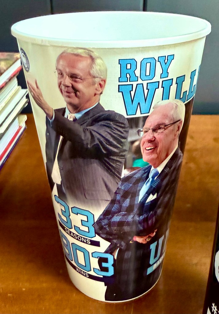 Somberly we returned to the game expecting UNC to lose by at least 30 points. But they showed signs of life and even caught up a little bit, not enough to give us any hope. But then they caught up a little more, but we knew they were licked. But then they caught up a little more and then a little more and suddenly Tom had hope. He insisted we wear the UNC caps from the display to bring UNC luck, and as they crept closer Tom’s excitement grew and grew. Finally, with four seconds left UNC were one point behind, but a tall UNC player got fouled while shooting. He had two shots coming, each worth a point. If he made them UNC would win. He wasn’t a good foul ball shooter and missed the first. If he made the second the score would be tied and the game, in which UNC now had the clear momentum, would go into overtime. He made the shot.