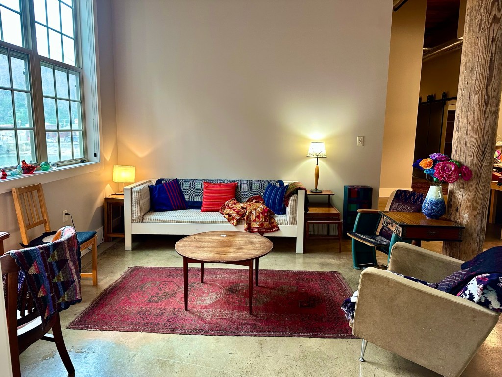 Today I am finally a renter in second floor Apartment 206, Capitola Mill, 177 Baileys Branch Road, Marshall, NC. on the bank of the French Broad River. But I am still sorting and packing and throwing things out with boxes filling the living room in my house at 140 College View Drive. The actual move seems a distant dream. But with Susie’s help I’ve made the living space begin to look bright and colorful. Todd and Tom lugged some furniture up the stairs. I am going to be living up a long flight of stairs on the second floor. The elevator was destroyed by the flooding of Helene so we are leaving the heaviest stuff until it is fixed and inspected sometime next week.