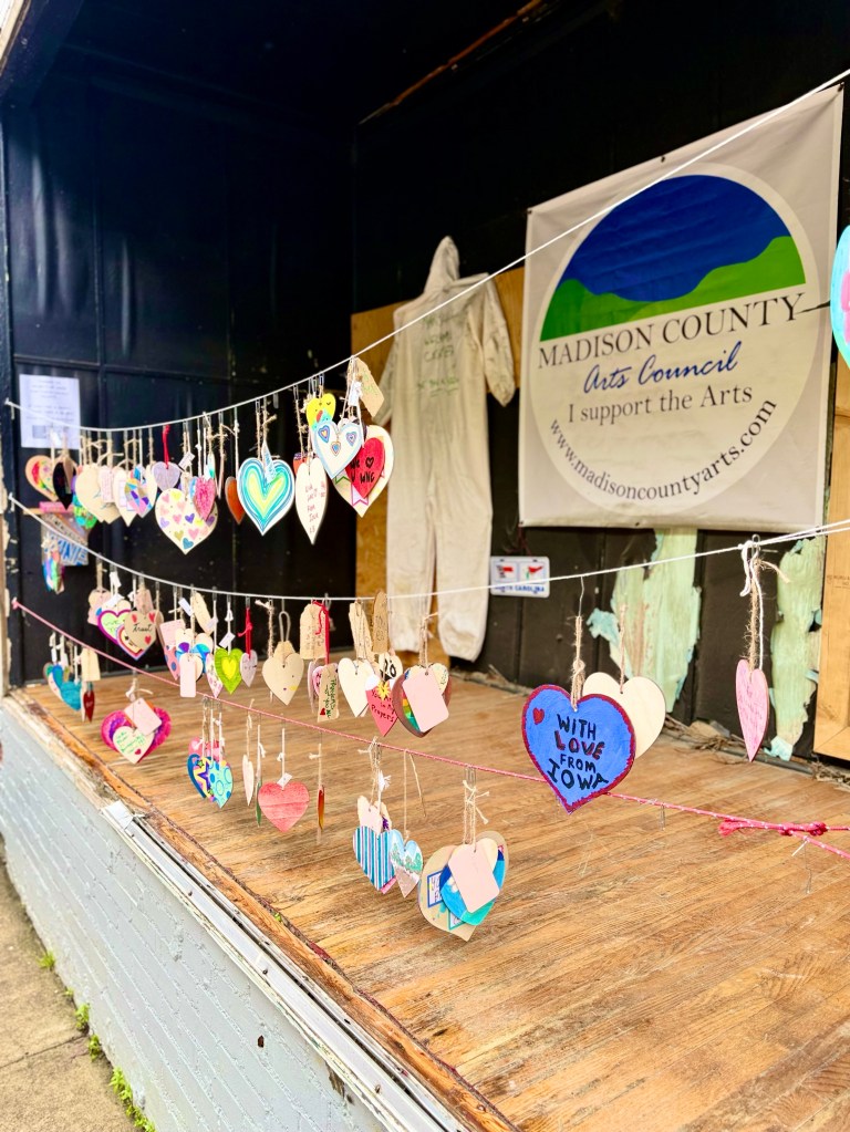 Yesterday was the warm up for Marshall Magic with people still getting ready, but today was the beginning of Marshall Magic. I put the last of 100 photographs of Nanostead Volunteers on restaurant walls which I and my daughter Susie had taken right after Helene flooded the town six and a half months ago and Marshall was in crisis clean up mode. 40 photographs were placed in MAD Co Brew House and 60 were placed on the Wall of Zadie’s in the Old Marshall Jail.