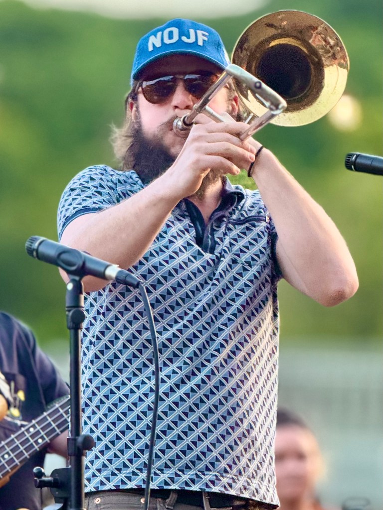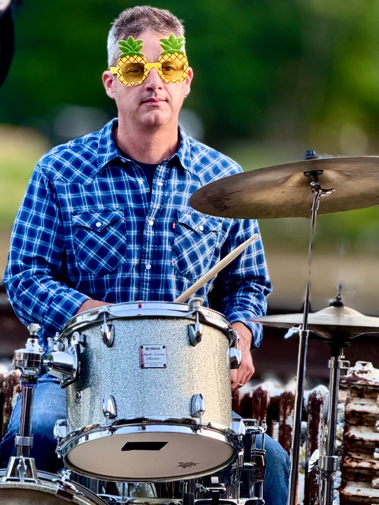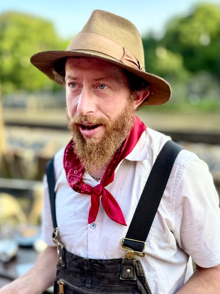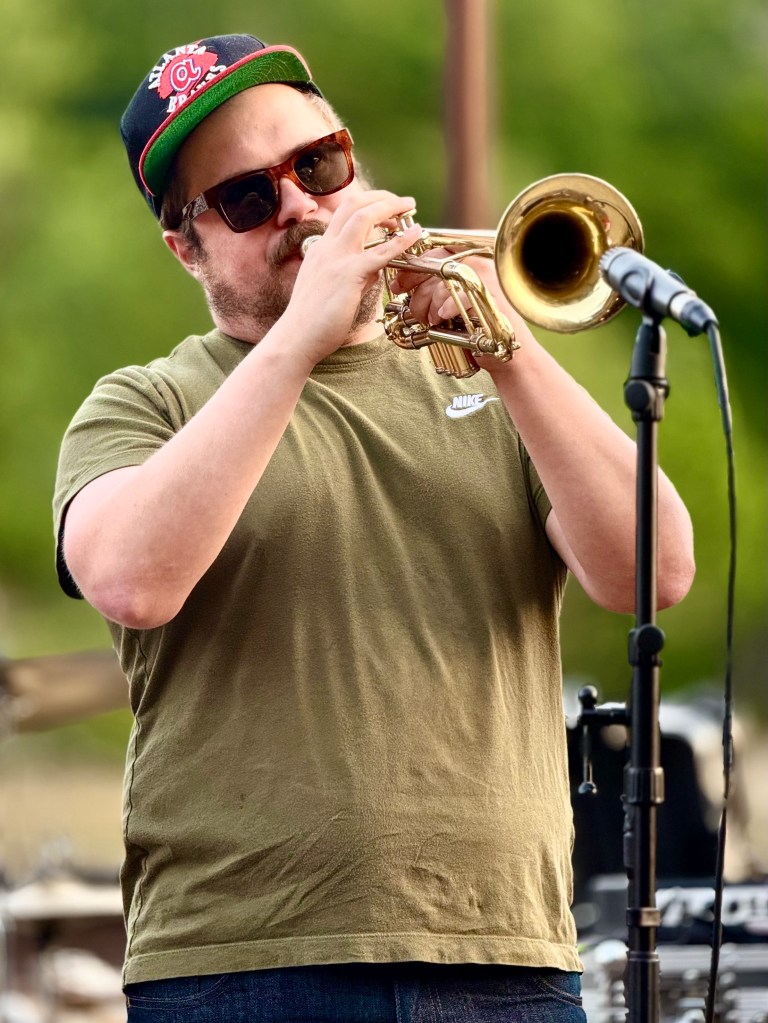 On a beautiful spring afternoon in the yellow light of late evening with the placid French Broad River flowing behind them the band Pleasure Chest, an Asheville band that plays every Thursday at the 5 Walnut Bar in Asheville, played for Marshall at Zadie’s in the Old Marshall Jail in the outdoor patio beside the railway tracks at the edge of the river. After the band had warmed people up people began to dance. The evening ended at 9 with darkness settling in. It was a return to the Marshall of the days before the great flood at the end of September. Josh, the owner of Zadie’s, a Warren Wilson College grad, was ecstatic. Everyone was smiling. It was a marvelous evening.