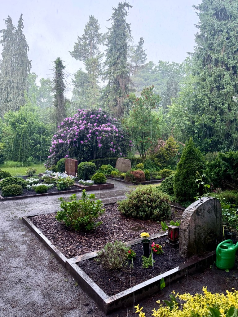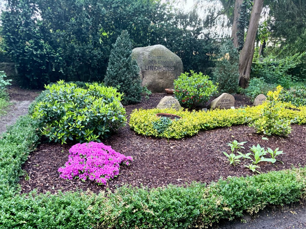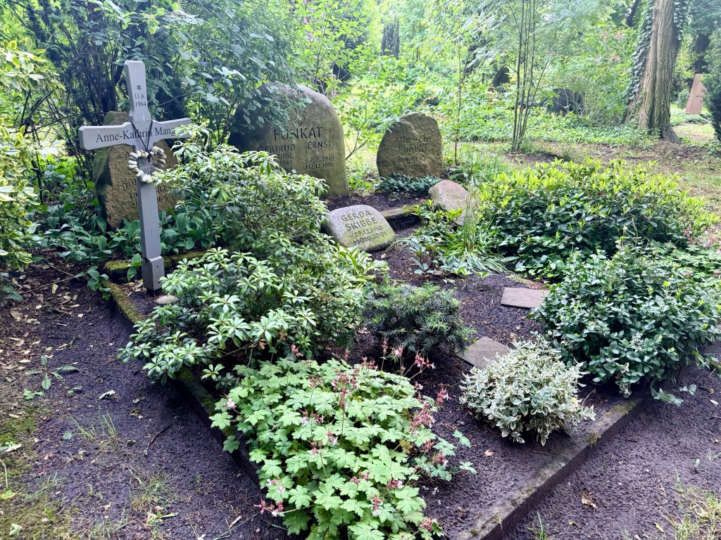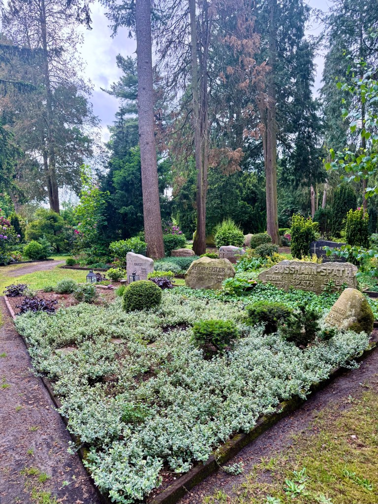 So yesterday we went to see the birch twin birch trees that are the marker of her presence in Winsen as well as to walk past the other beautiful gravesites or people that Elke and Heinrich knew when these people were alive. Elkes mother and father and brother have stones, some taken from other cemeteries, now closed, where they were buried. Anna Kathrin, Elke’s daughter who died young, has both a marker here and in the distant cemetery where she was buried.