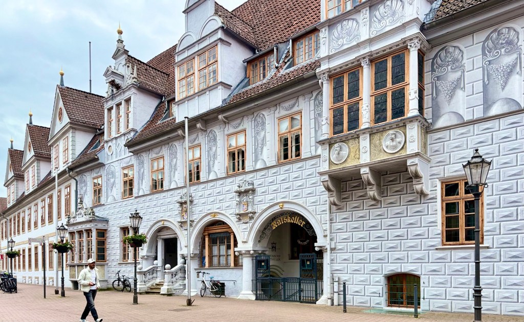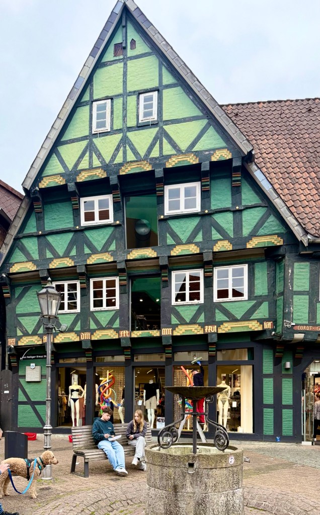 But in wandering around Celle I got to see Celle again, where I have been many times and where my wife, Kathe, was born. It is a beautiful town of fachwerk timbered houses and a large white moated castle where Sophie gave birth to the line of kings, the Georges, who later became kings of both England and Hanover, and finally England, if I’ve got things straight. She was later unfaithful to her husband and locked up for life but her kids went on to become kings of England and for that reason Celle wasn’t bombed by the British or anyone else during World War 2, while Hannover and other big towns were flattened. That is the reason that many buildings, now tourist shops, are outwardly the same as they were in the 1500’s. So here are a few photographs of Celle.